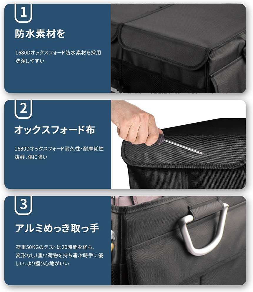 沖縄県の場合は追加料金が1000円になります。商品名 車用収納ボックス商品説明 【高品質生地】1680Dオックスフォード防水素材を採用、撥水性・耐久性・耐摩耗性抜群、傷に強い、洗浄しやすい。5mm繊維板で支えている、3kgにも及ぶ重さはその丈夫さを物語っている、たくさん荷物を入れても型崩れしない!
