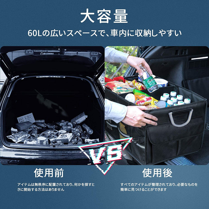 【多用途・使用便利】:本収納ボックスは車内で使用するだけではなく、家庭用、アウトドアやピクニックの時に食品の収納などもご利用を頂きます。両側に取っ手が付いていますので、荷物を収納したまま持ち運び可能で、非常に便利です。