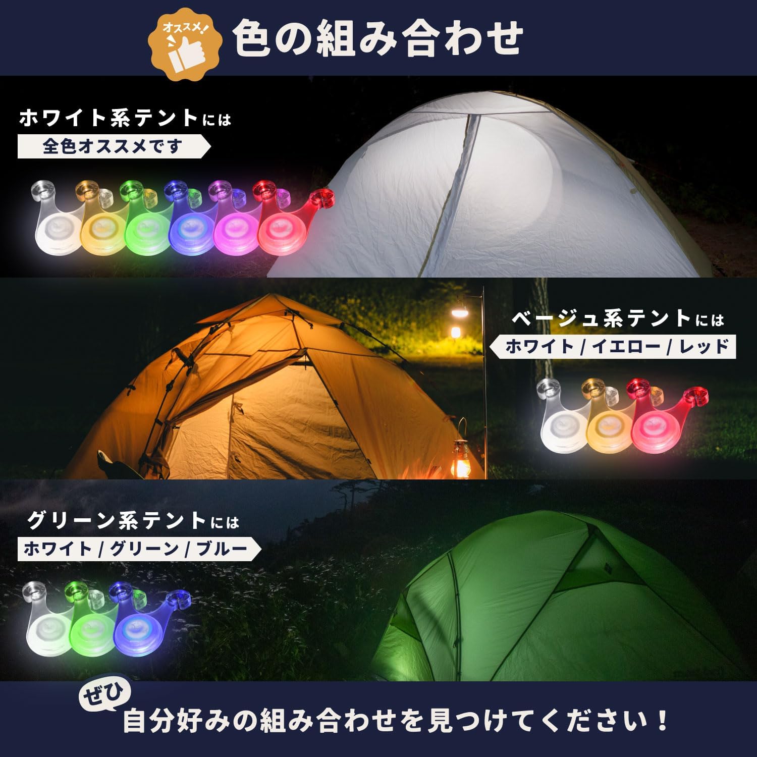 本体を押す毎に点滅/スロー点滅/点灯/3種類の点灯パターンに切り替えが出来き、テントやタープを綺麗に彩り素敵な夜を演出します。夜間の転倒防止にもなり、雰囲気作りにも最適です!素材 素材:TPP