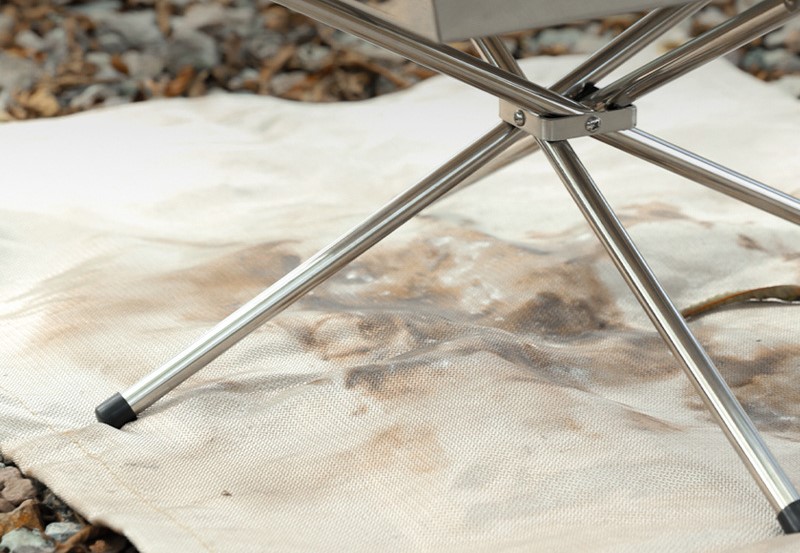 「焚き火台」や「薪ストーブ」の下側に伝わる熱の殆どは、「放射熱(輻射熱)」です。焚き火シートは熱源から伝わる「熱」の「ダメージ」や飛び散る「火の粉」を遮り、地面や床を守ります。
