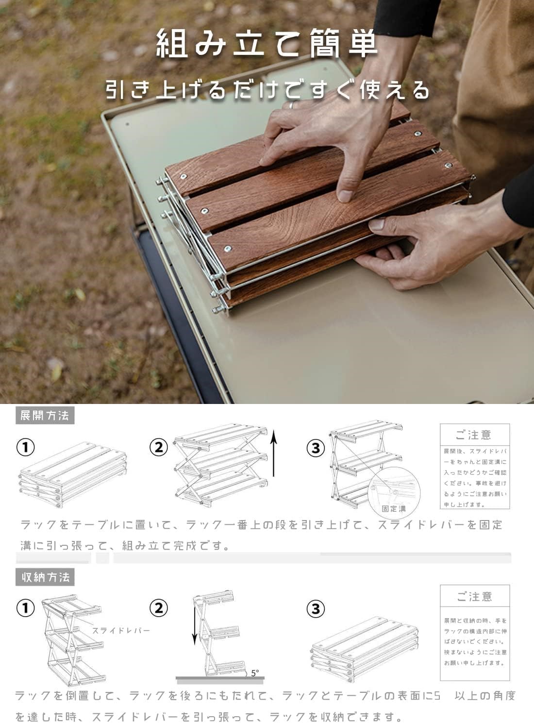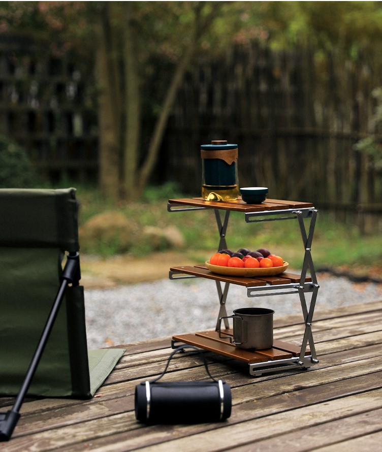 卓上収納ラック キャンプ 卓上ラック 家庭用収納ラック フォールディングラック 天然木製ラック 小物置き 折り畳み式 軽量 組み立て簡単 コンパクト収納 多機能 アウトドア