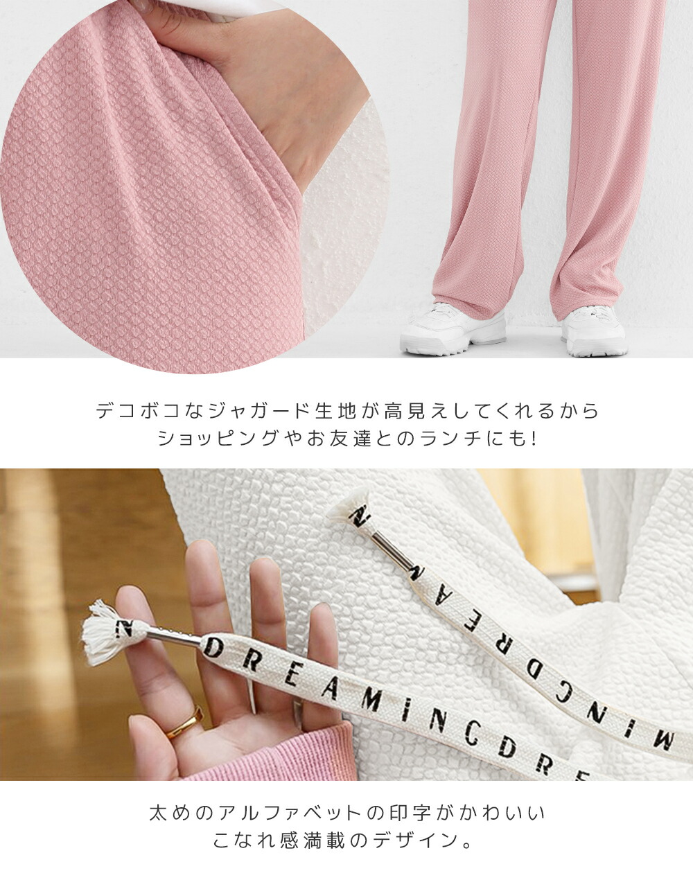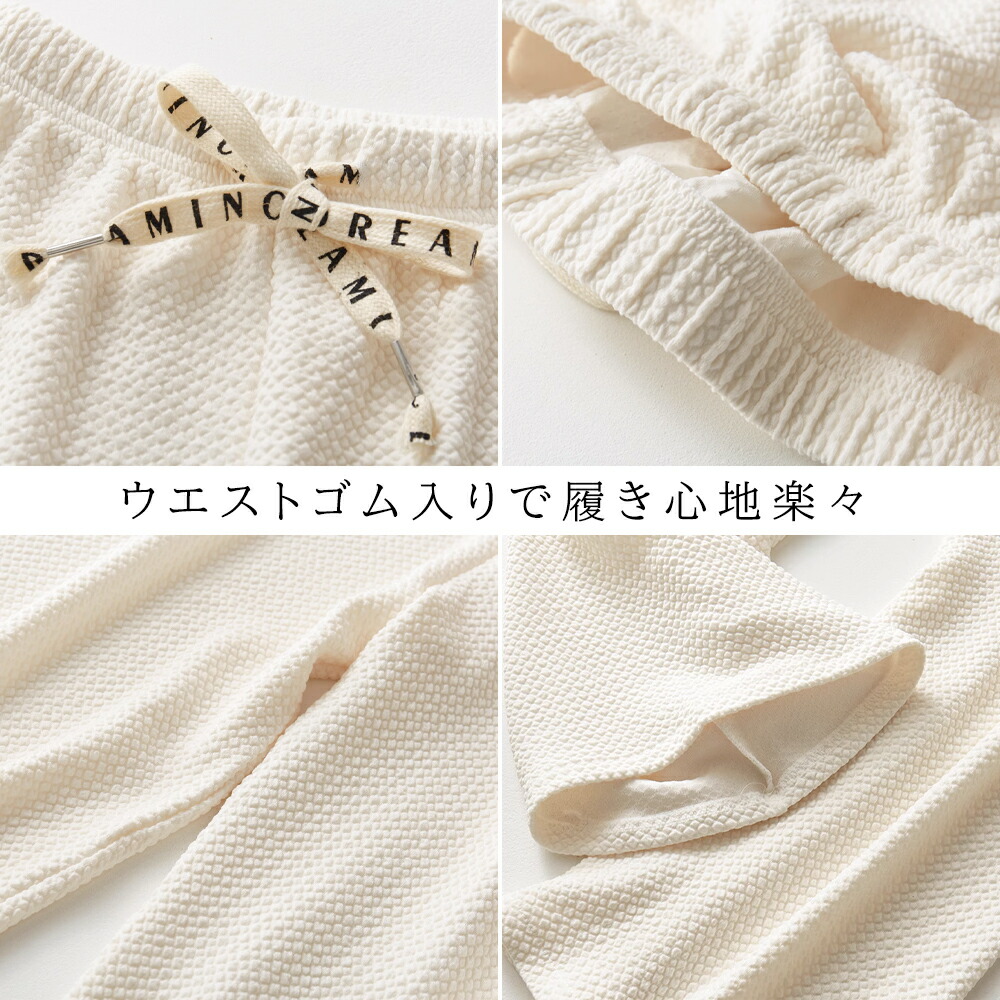 凸凹エンボス加工ワイドパンツ ロングパ