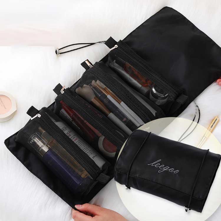 通勤や通学などのデイリーはもちろん、旅行用のバッグとしてもオススメ! 4つのメッシュポーチが一つにコンパクトにまとまる便利な折り畳み式ポーチ。 旅行や出張、レジャーなどお出掛けの持ち運びにも大変便利です! 荷物がたくさんの時も一つにまとまるのでバラバラにならずスッキリ収納できます。 ポーチのストラップは吊り下げにもできるので狭いスペースでもサッと使えます! ポーチはマジックテープで取り外し可能で荷物が少ない時は単品でも使用できます。 メッシュポーチで中身が見えるのでどこにはいっているか探さずに使えます。 またストラップはポーチの中身にあわせ、調節できるので4つのポーチをピタッと収納できます。 幅広いシーンで大活躍間違いなしなポーチです。