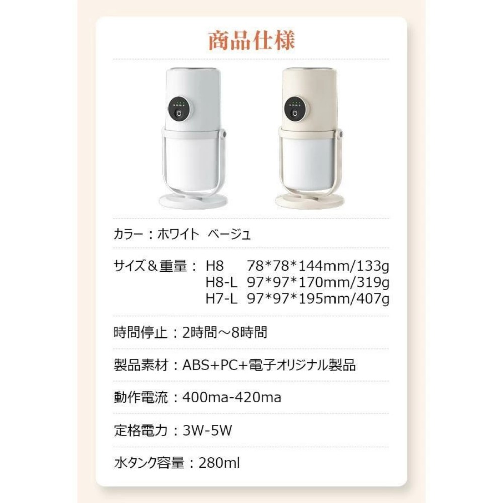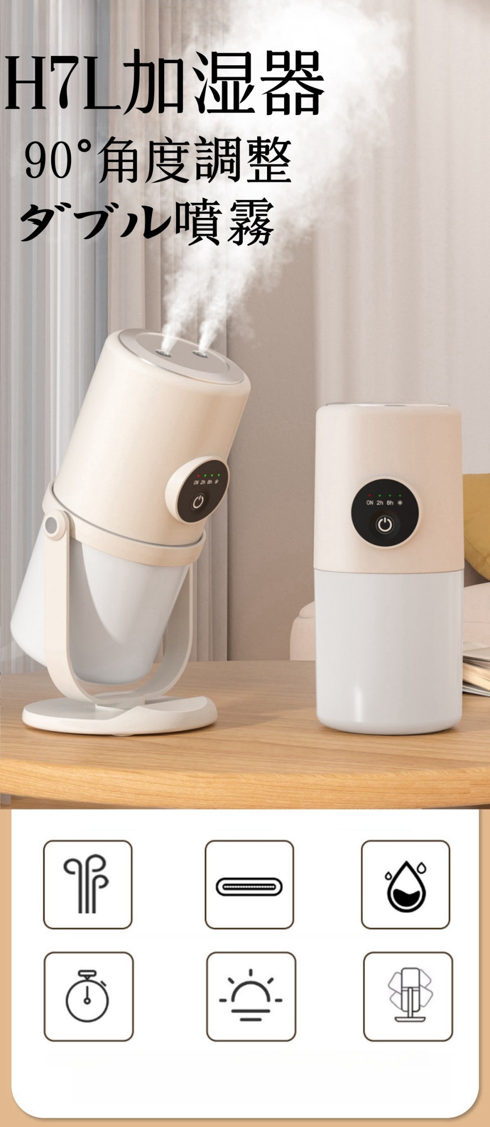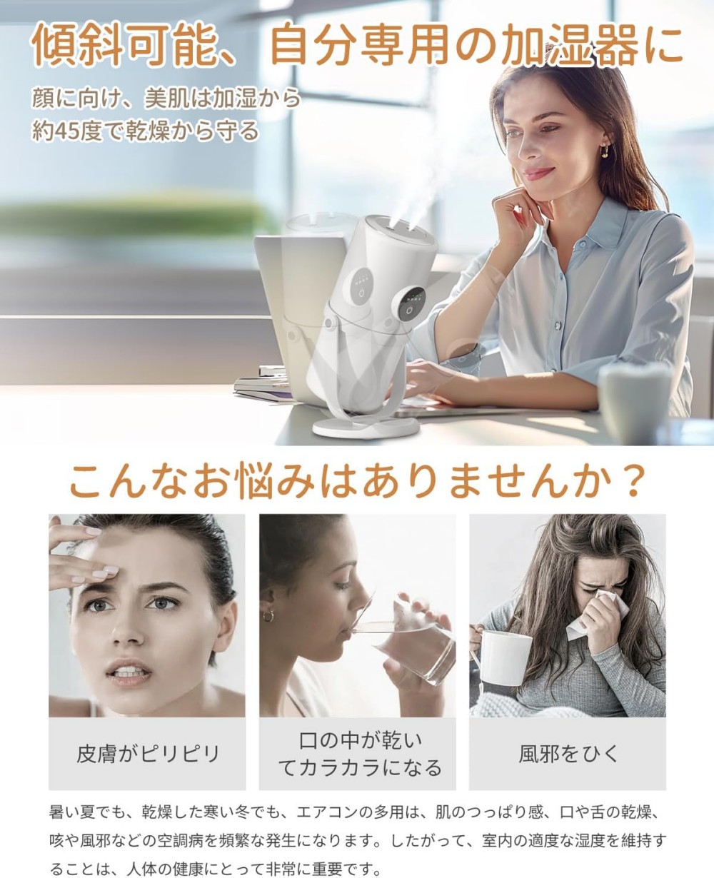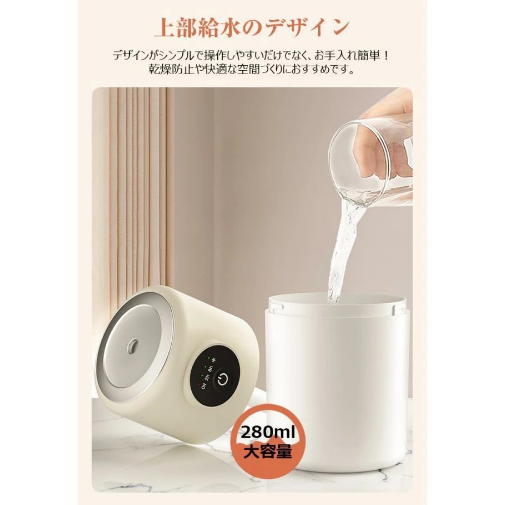 卓上加湿器 コードレス 超音波式 加湿器 小型 卓上 ダブル噴霧 280ml 空焚き防止 タイマー スタンド付 90°角調整 ライト付 静音節電 USB 充電式 持ち運び便利