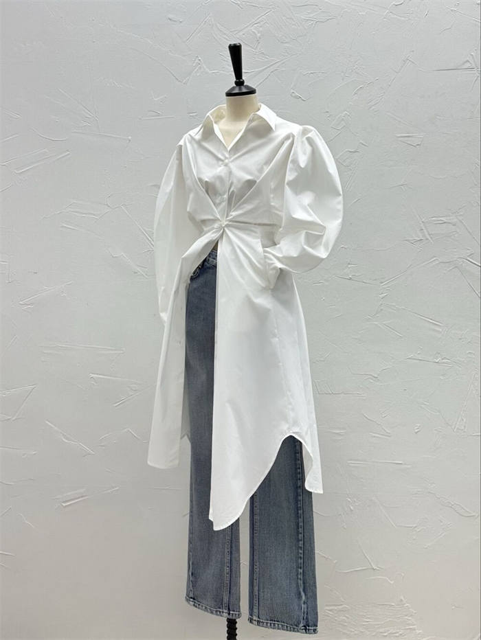 シアースリーブ ドッキングシャツ ボウタイシャツブラウス