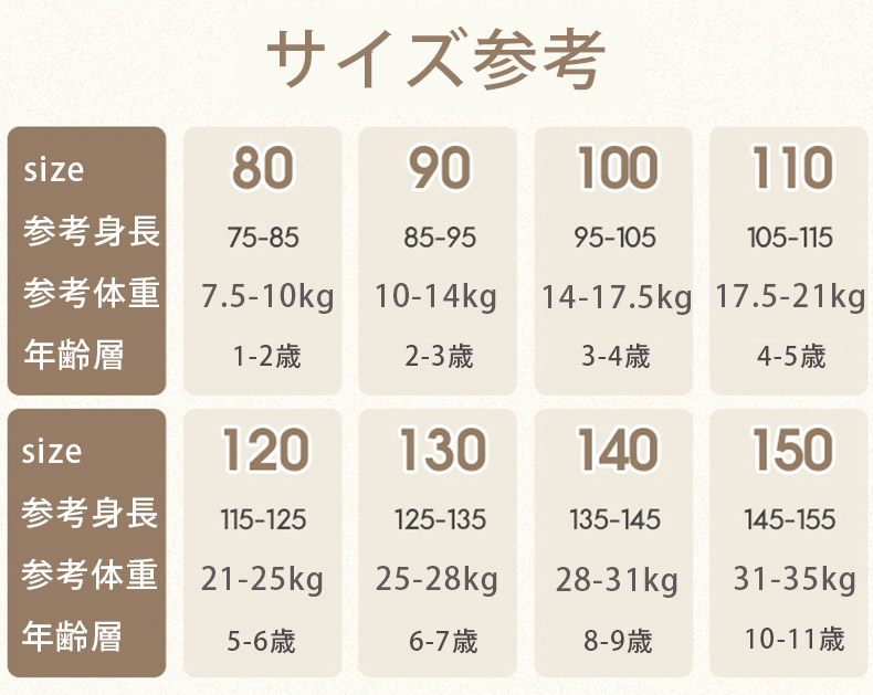 サイズ: 80cm 90cm 100cm 110cm 120cm 130cm 140cm 150cm