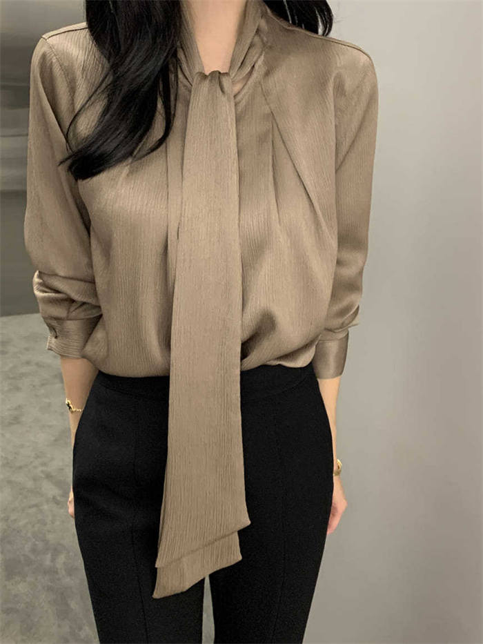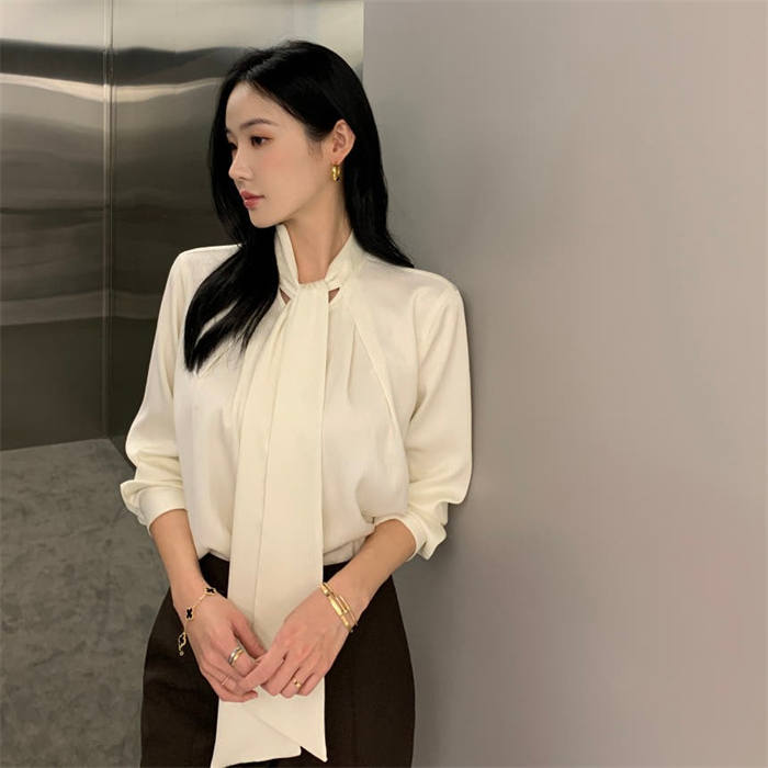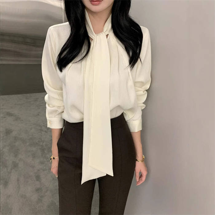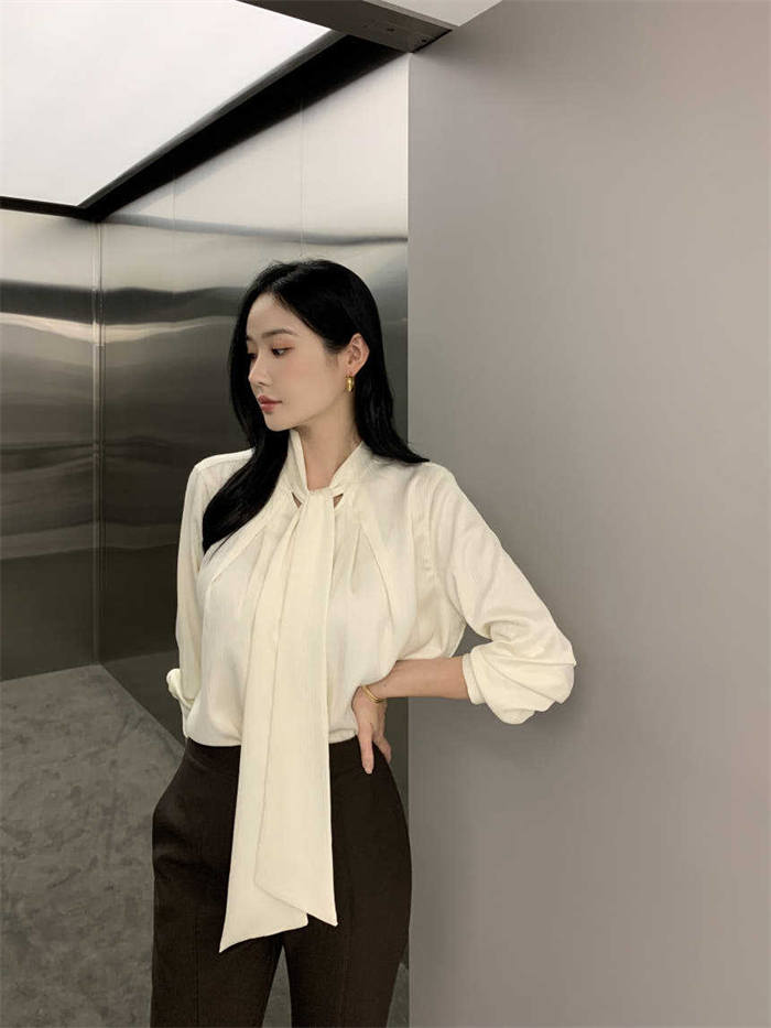 シアースリーブ ドッキングシャツ ボウタイシャツブラウス