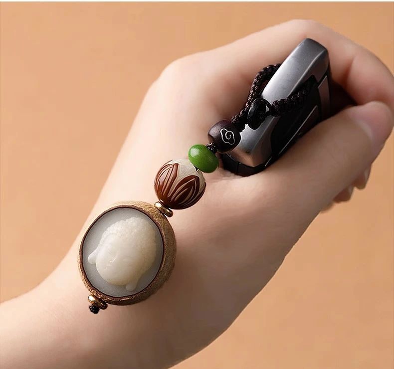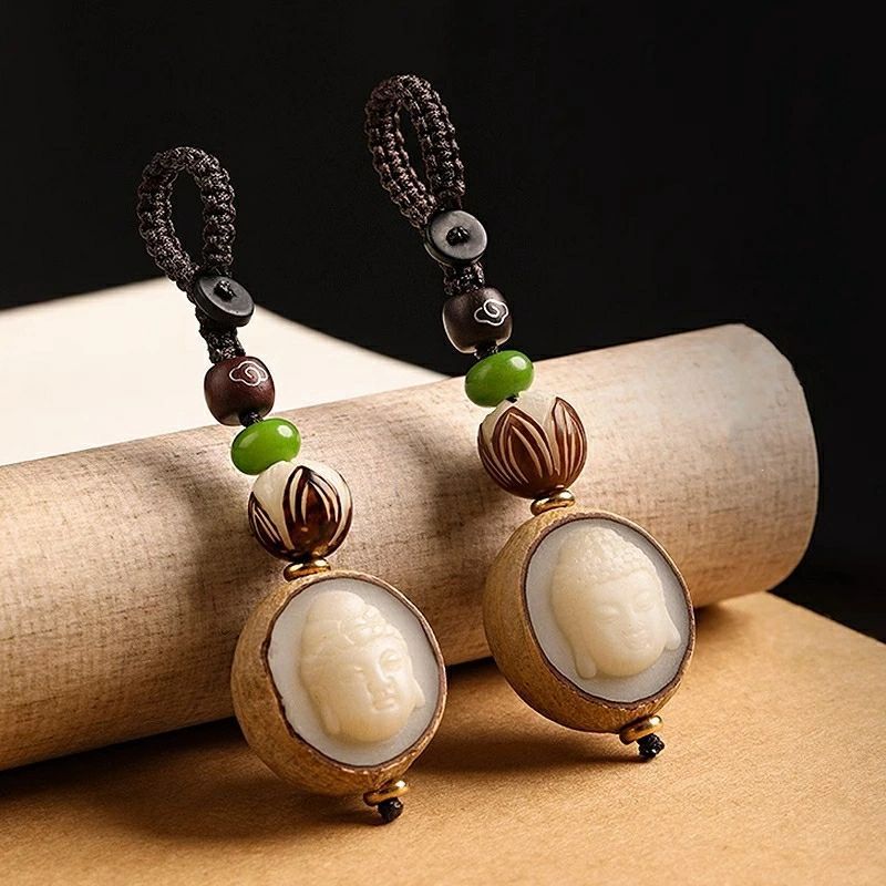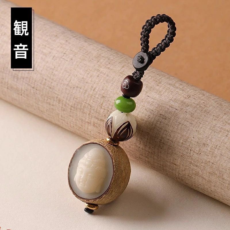 キーホルダー 彫刻 ペンダント 観音