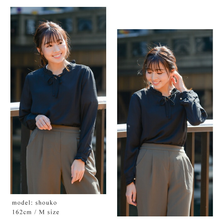 シアースリーブ ドッキングシャツ ボウタイシャツブラウス