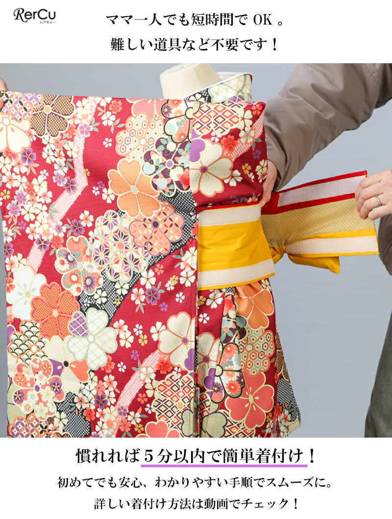ママさんお一人でも簡単に着付けができるよう工夫されており、帯はマジックテープ式で固定するだけ。