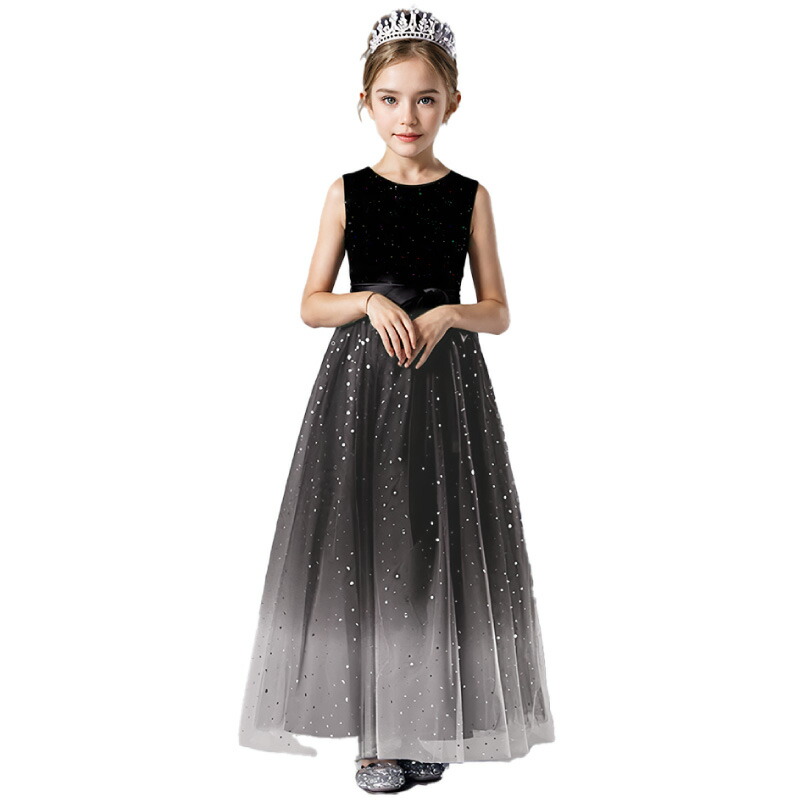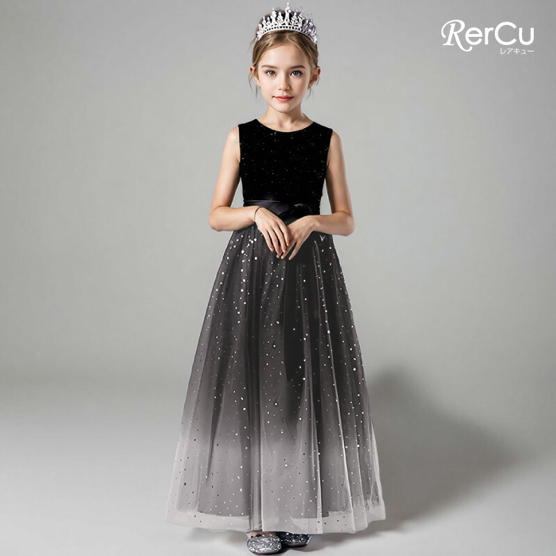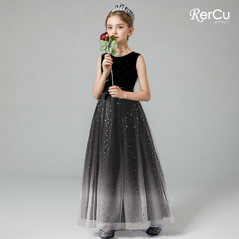 スパンコールグラデーションチュールドレス キラキラ ふんわり 高級 子供 シンプル 上品 フォーマル 160 150 140 130 120 ピアノ バイオリン 発表会 ブラック 黒 フラワーガール