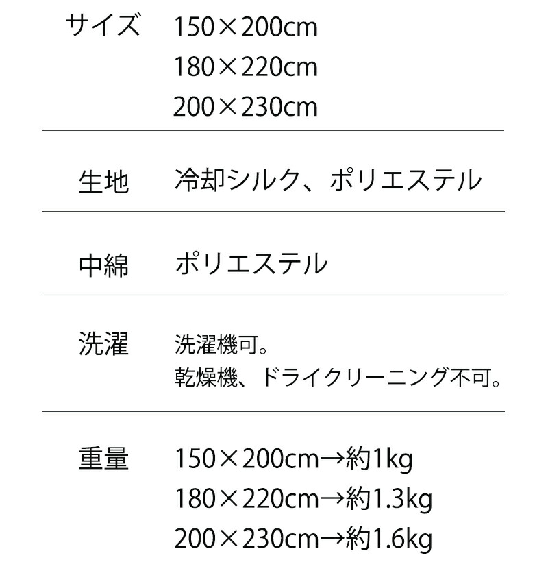 商品情報商品名 冷却クールケット素材/材質 冷却シルク、ポリエステルサイズ/寸法 150×200cm