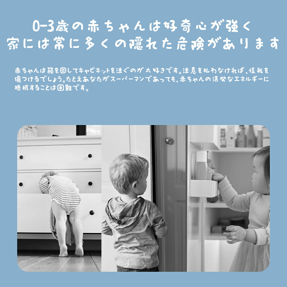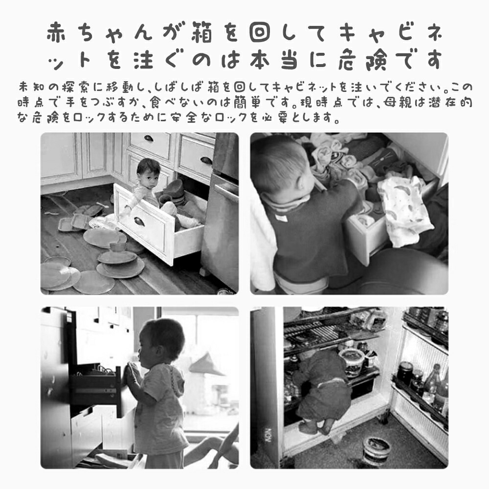 【子供守り 地震対策】ロックを解除しないと開かないようにすることで、窓 引き出し 冷蔵庫を開けることが好きな赤ちゃんの指はさみを防止し、予期せぬ危険から守ります。地震の際の散乱もよく防止し、ペットのいたずら対策にも有効です。