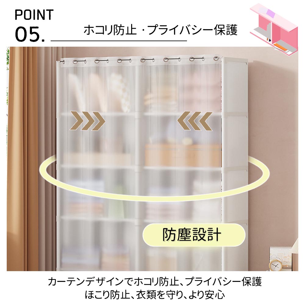 防塵クローゼット 力一テン付き 6 層