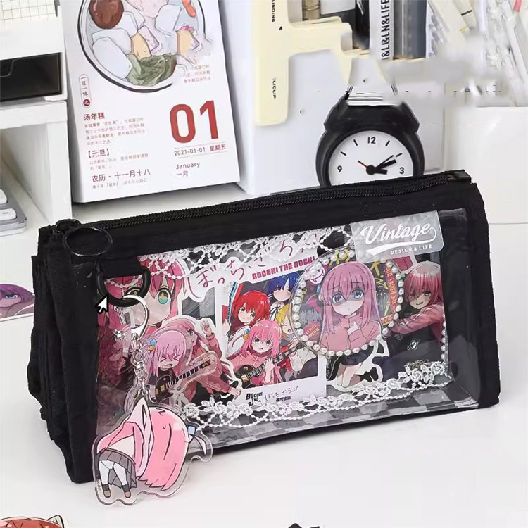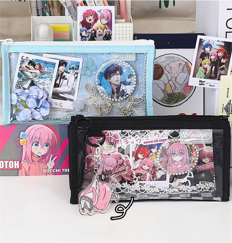 ペンケース 小学生 中学生 高校生 缶バッチ テスト 試験 筆入れ ポーチ かわいい バッジ入れ 通学 推し 推し活 痛 バ いたば いたばっぐ ヲタ オタク 人気 かわいい 通学 透明窓