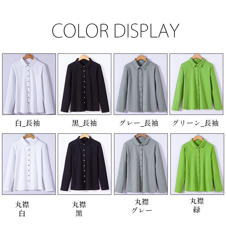カラー: 白 黒 グレー グリーン 白_丸襟 黒_丸襟 グレー_丸襟 グリーン_丸襟