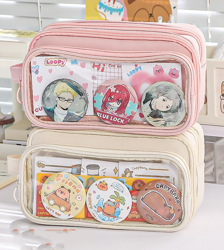 ペンケース 筆箱 大容量 多機能 小学生 中学生 高校生 子供 大学生 痛ペンケース 缶バッチ入れ日用品雑貨 文房具 手芸 文房具 事務用品 筆記具 ペンケース