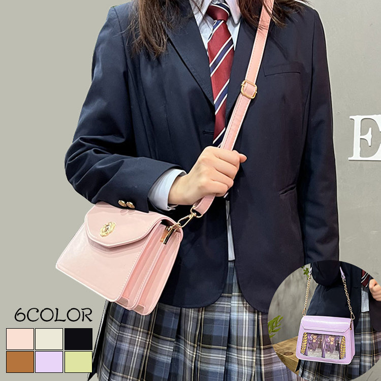 コンパック 小さめ ミニ ミニバッグ カワイイ 可愛い オシャレ キレイ キレイめ 人気 軽量 缶バッジ バッジ ビニールバッグ ビニール ビニバ 無地 高校生 中学生 大学生 大人