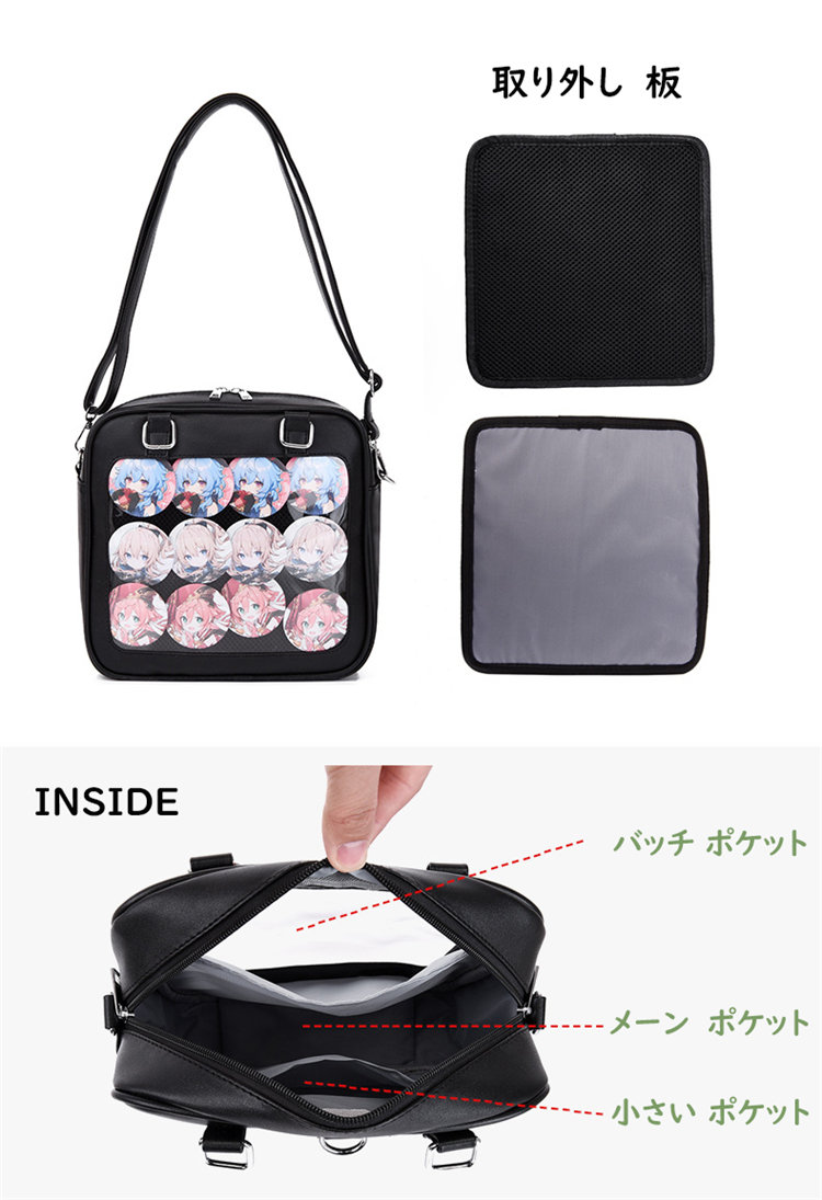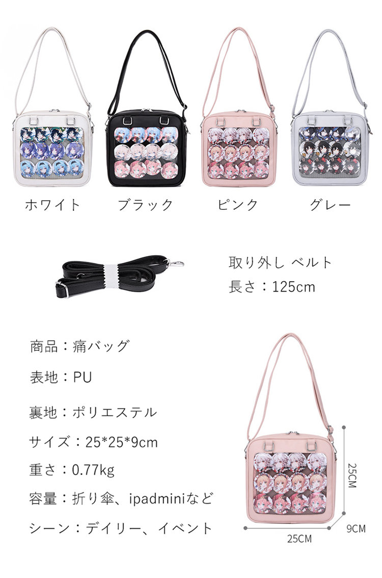 痛バッグ PU 3WAY 痛バ ショルダーバッグ ビニール オタクバッグ オタバ 痛 バ いたば いたばっぐ 透明カバン 缶バッジ バッジ バッジバッグ 女子 女の子