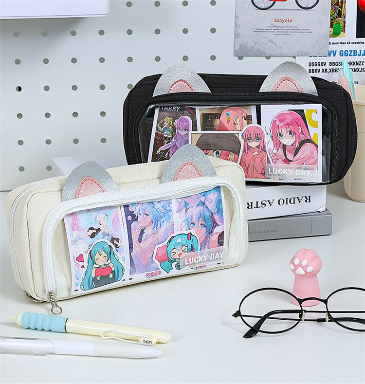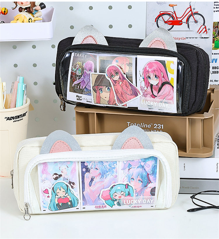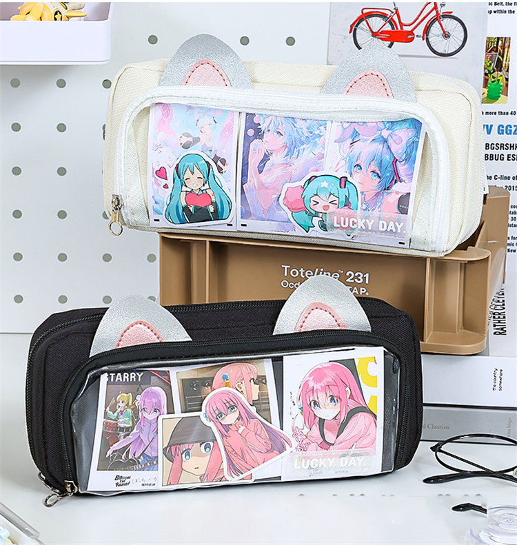 ペンケース 筆箱 推し筆箱 推し 痛ペンケース 痛バ 痛バッグ 缶バッジ クリア 透明窓日用品雑貨 文房具 手芸 文房具 事務用品 筆記具 ペンケース