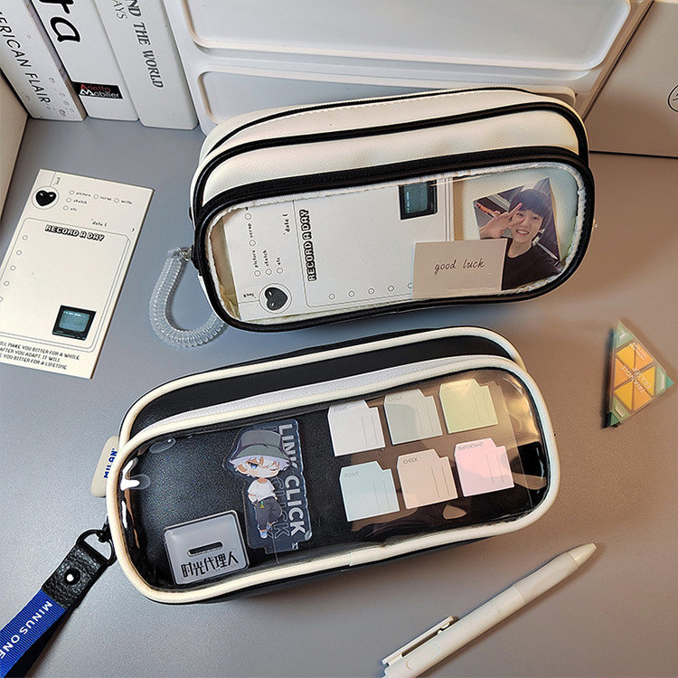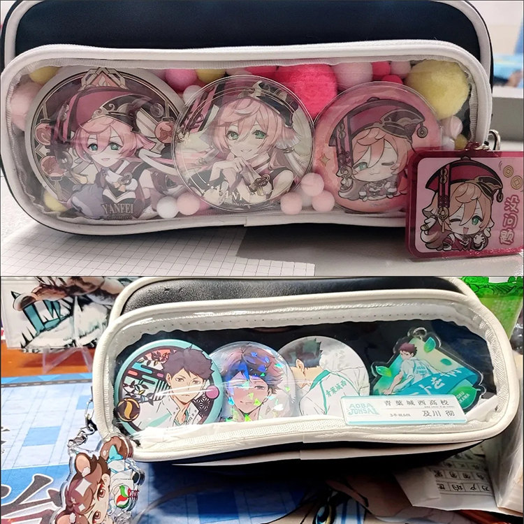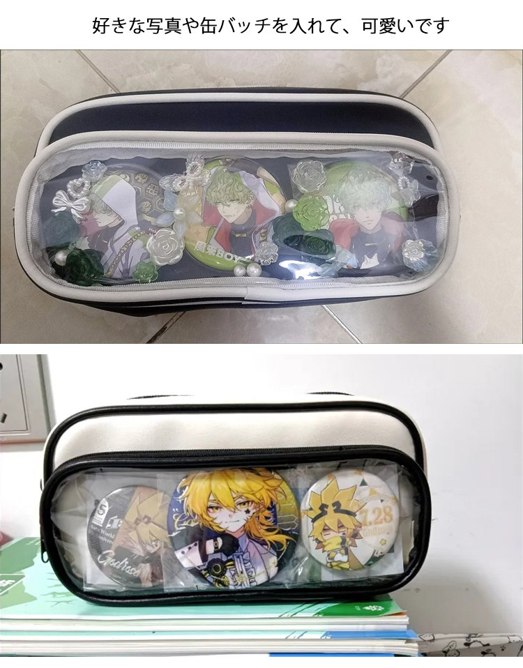 ペンケース 小学生 中学生 高校生 缶バッチ テスト 試験 筆入れ ポーチ かわいい バッジ入れ 通学 推し 推し活 痛 バ いたば いたばっぐ ヲタ オタク 人気 かわいい 通学 透明窓