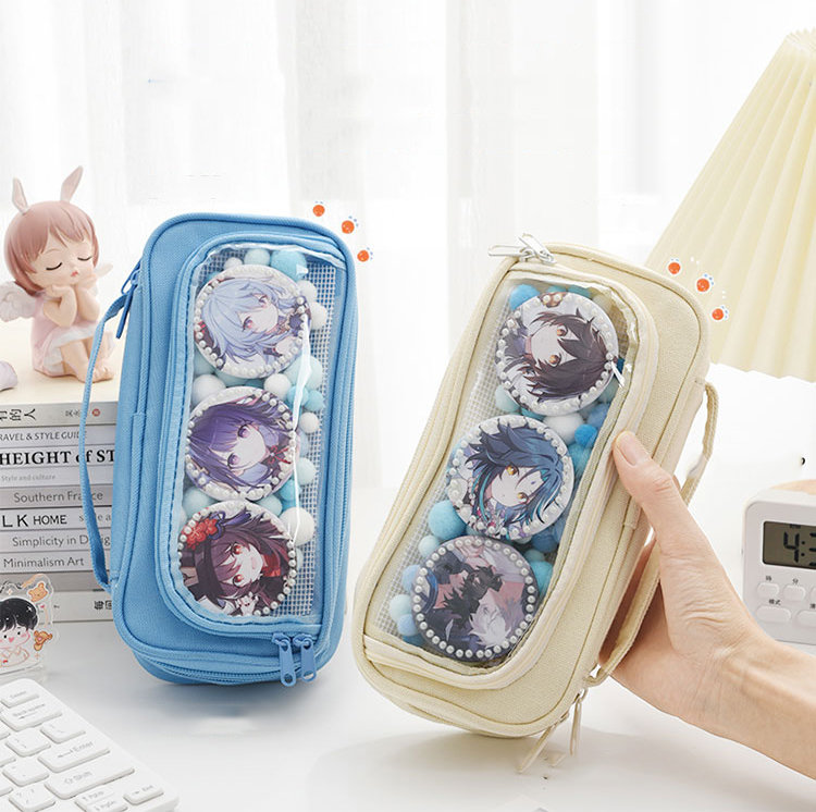 ペンケース 10代 20代 30代 缶バッチ バッジ ガールズ 女子 女性 男子 男性 オトン 大人 推し デコ デコケース 透明 透明ケース クリア オタク カワイイ 人気 ポーチ 子供 新入学