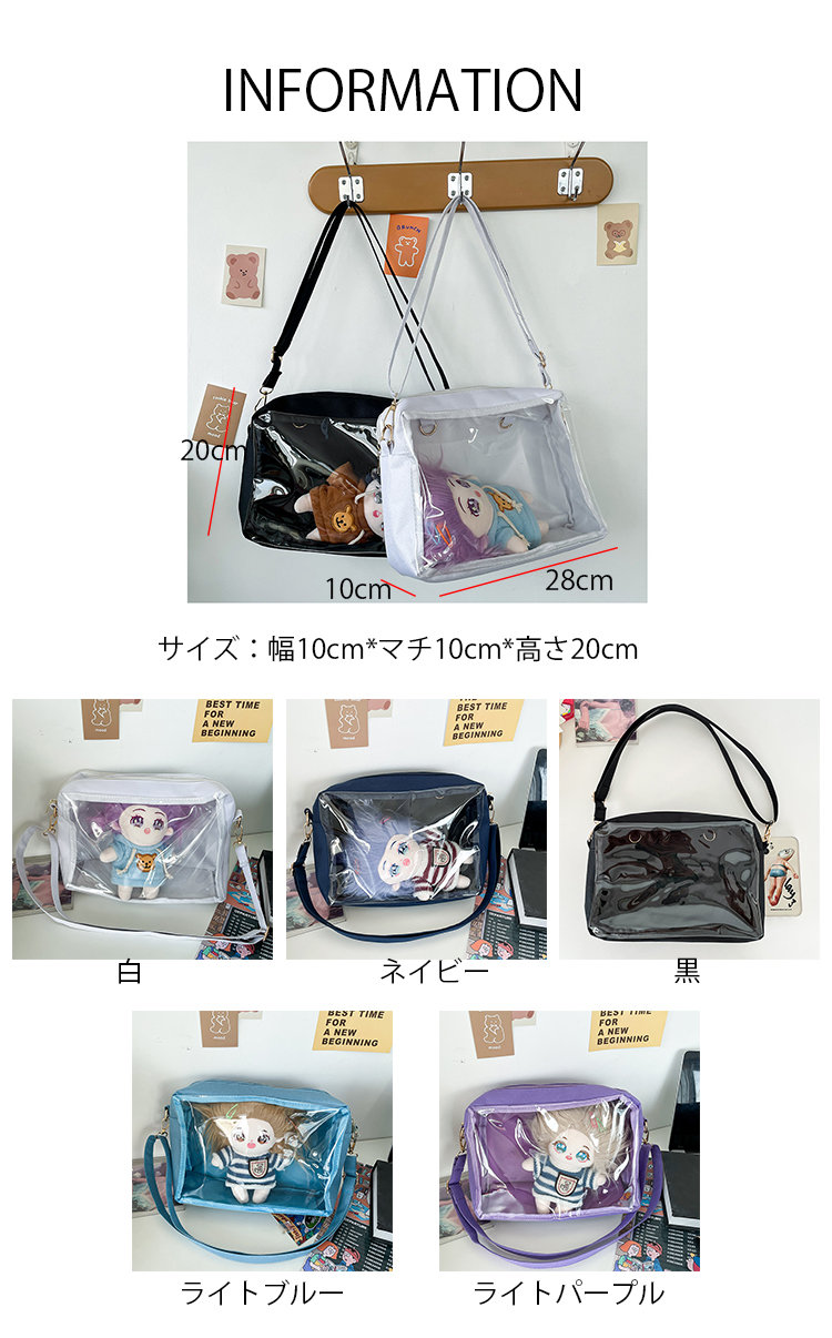 痛バッグ 痛バ 透明カバン 鞄 ばっぐ オタク活 推し活バッグ 女の子 ガールズ 女子 女子高生 女子中学生 高校生 中学生 大人 オトナ 可愛 カワイイ 無地 シンプル カジュアル