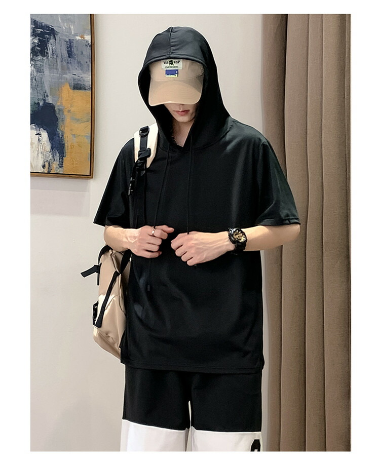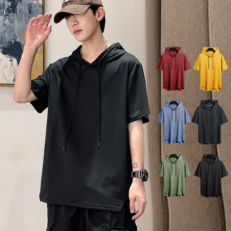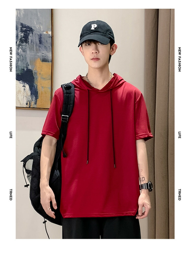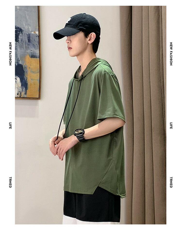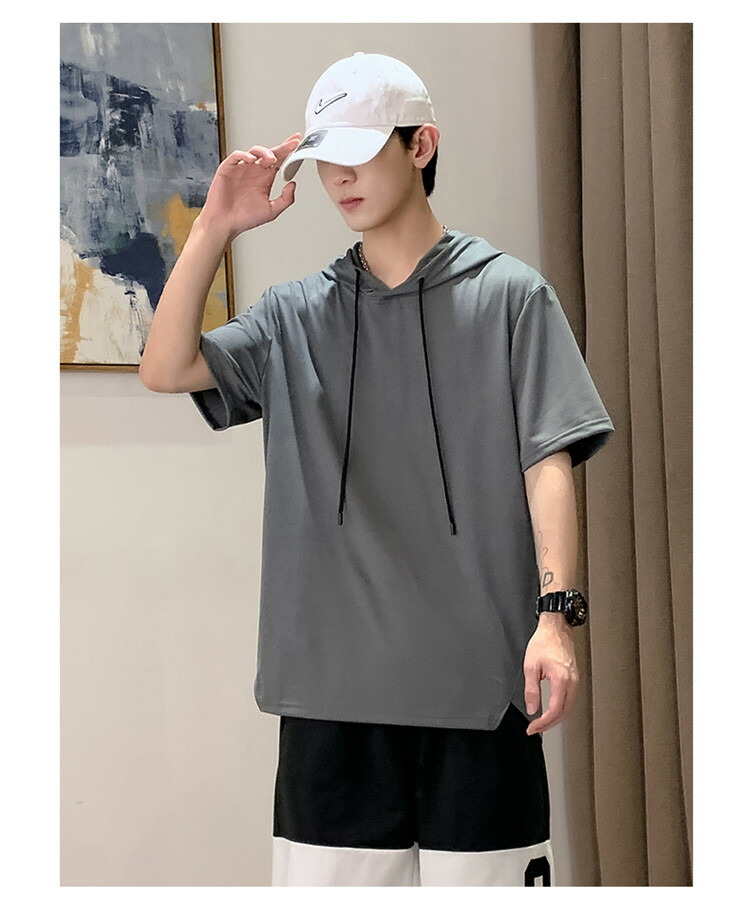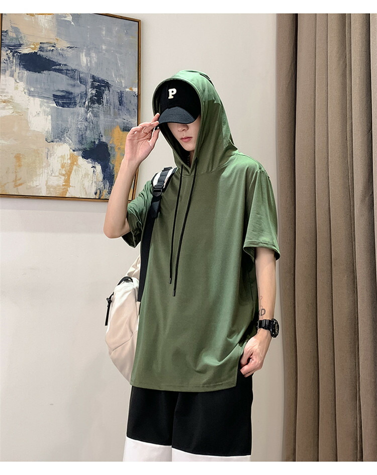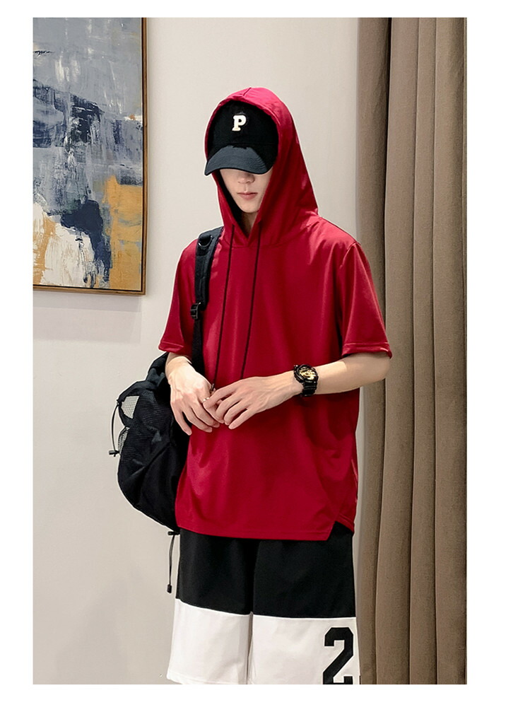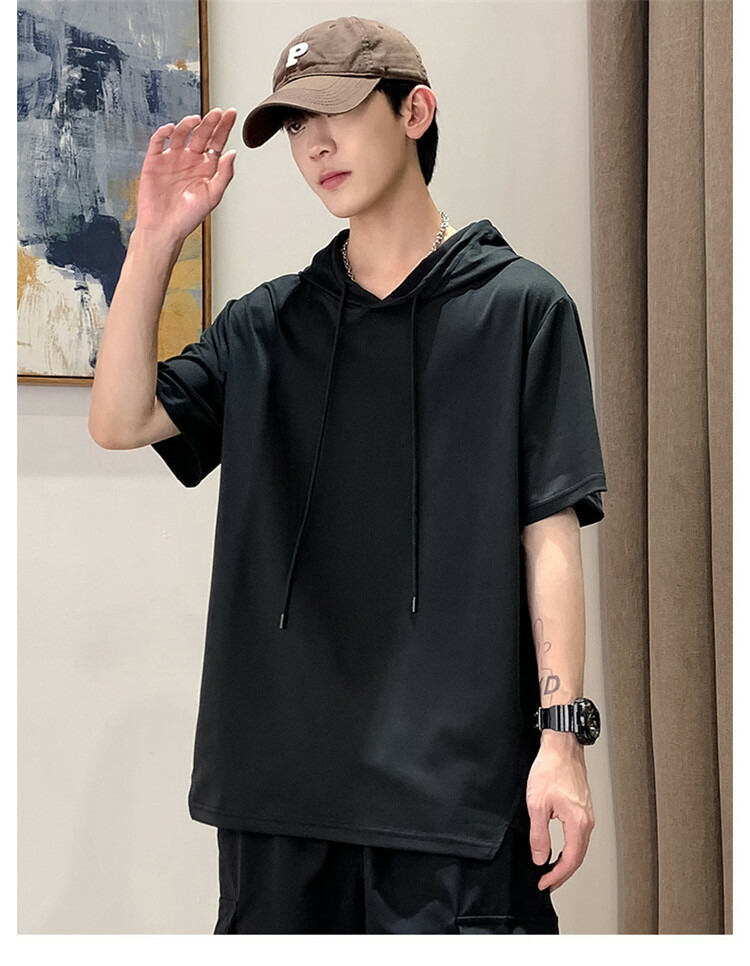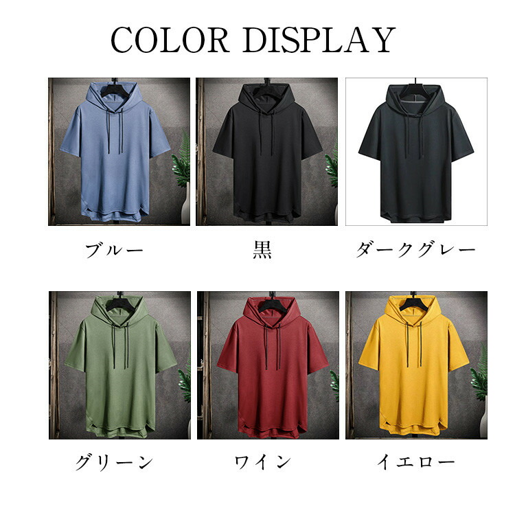 パーカー 半袖 メンズ Tシャツ トップス フード付き フーディー 無地 シンプル 夏 夏服 ティーシャツ