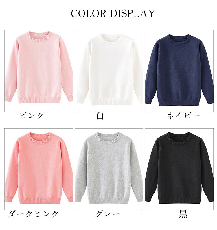 キッズセーター ニットセーター キッズ 子供 ニット トップス クルーネック 長袖 インナー 男の子 女の子 幼稚園