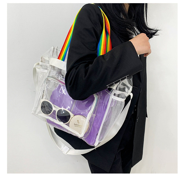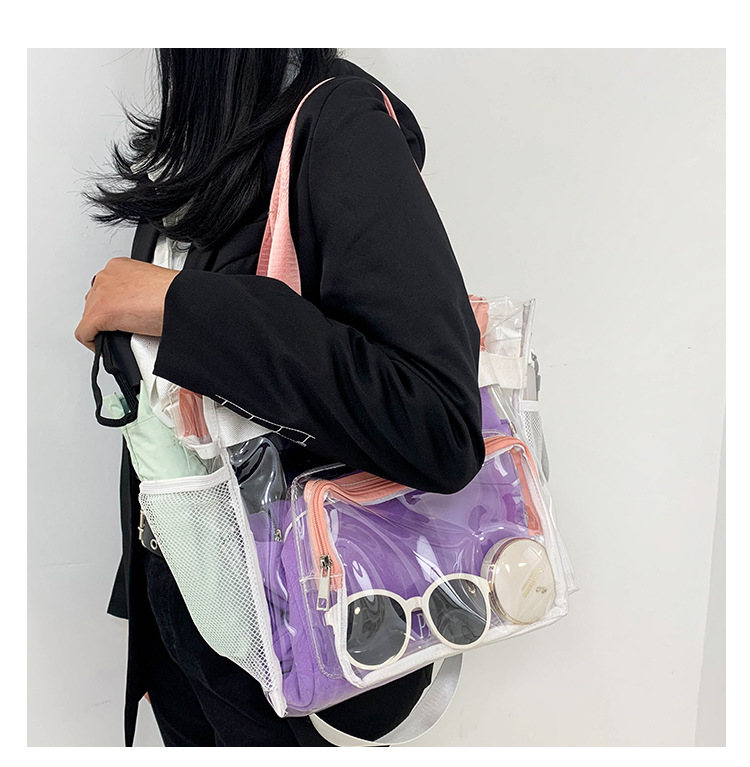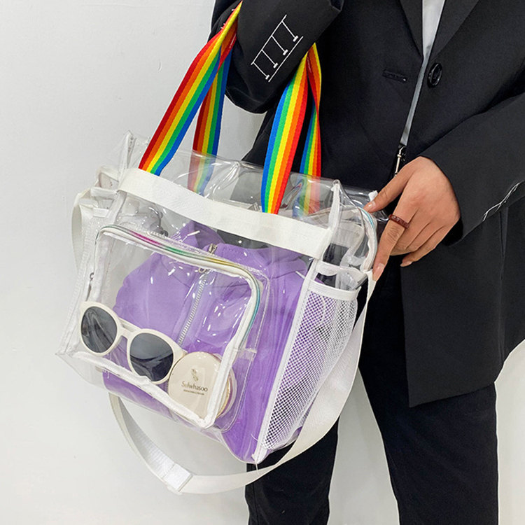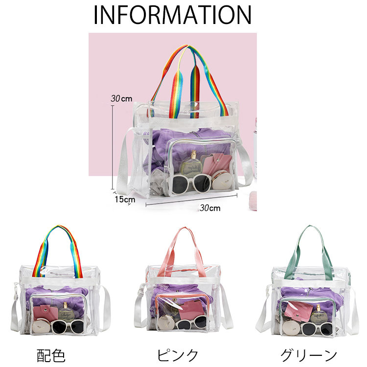 トートバッグ バッグ レディース カバン 鞄 ショルダーバッグ クリア クリアバッグ 透明バッグ プールバッグ プール ビニールバッグ 大容量 軽量 カジュアル 旅行 スポーツ 水泳 運動 ヨガ スイ