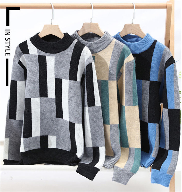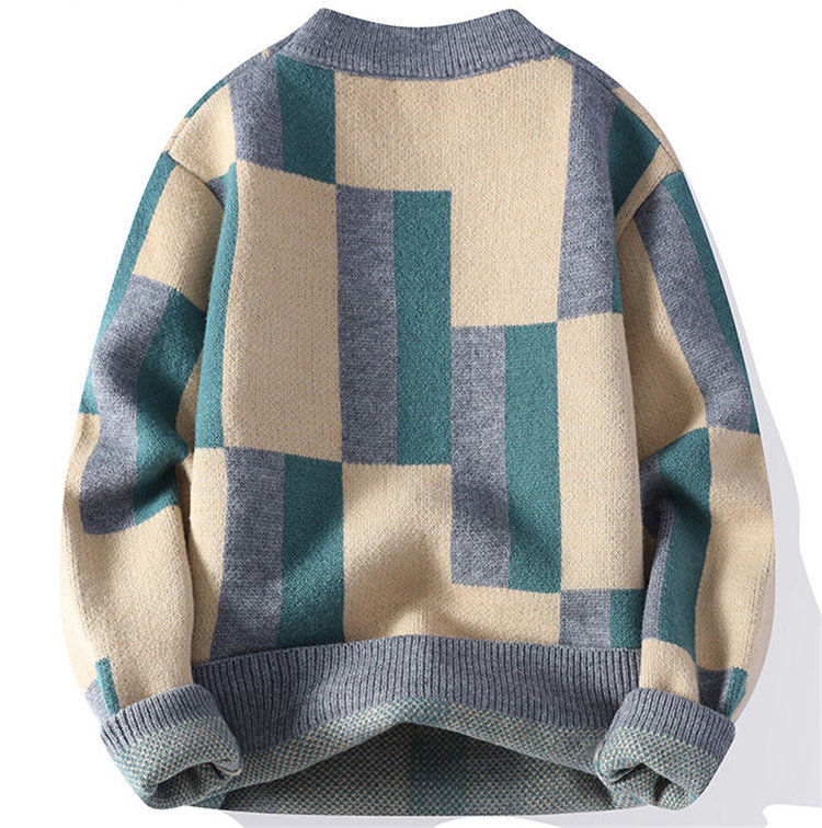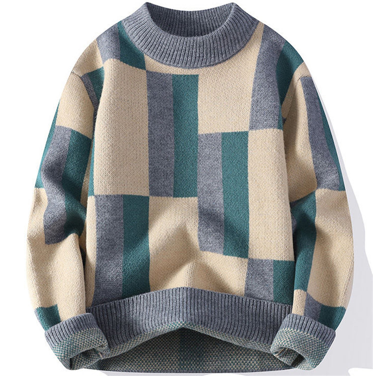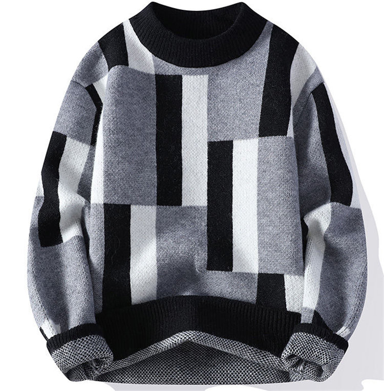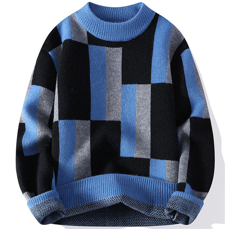 セーター メンズ 防寒 保温 暖かい あったかい ニット ニットセーター 丸首 クルーネック 長袖 配色 冬服