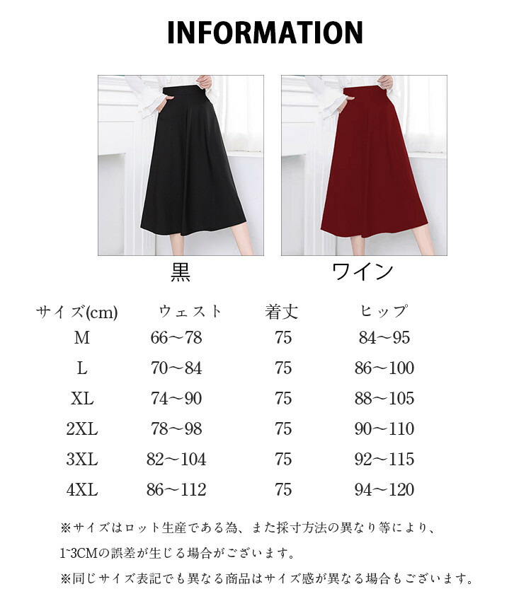 ロングスカート レディース 膝下 ハイ