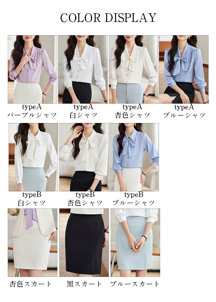 カラー: typeA白シャツ typeA杏色シャツ typeAブルーシャツ typeAパープルシャツ typeB白シャツ typeB杏色シャツ typeBブルーシャツ 杏色スカート 黒スカート ブルースカート