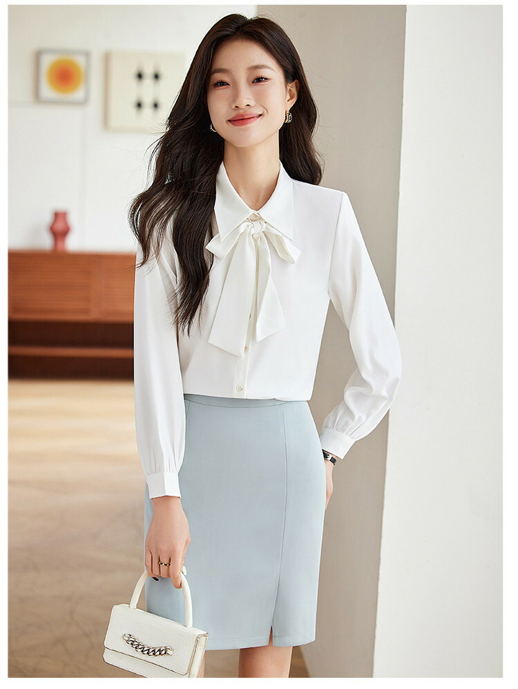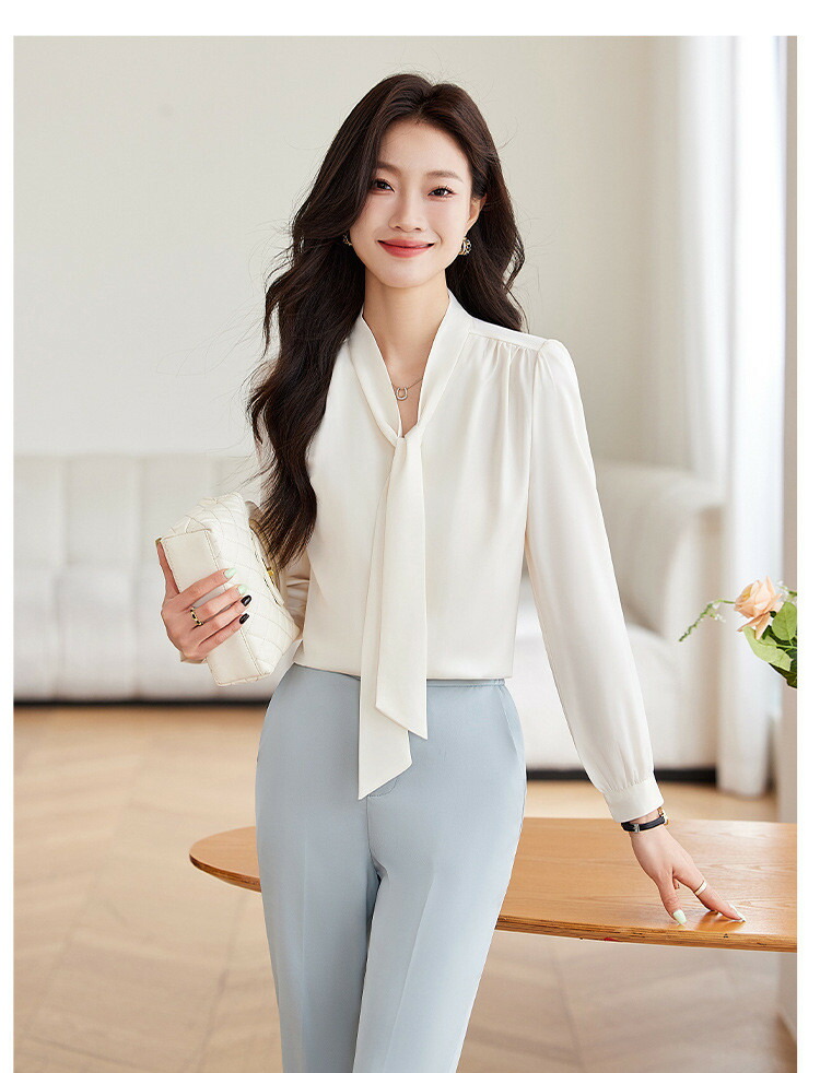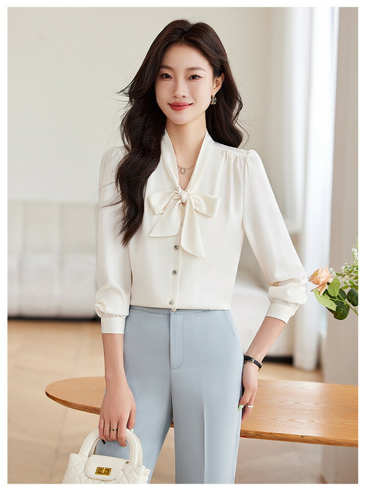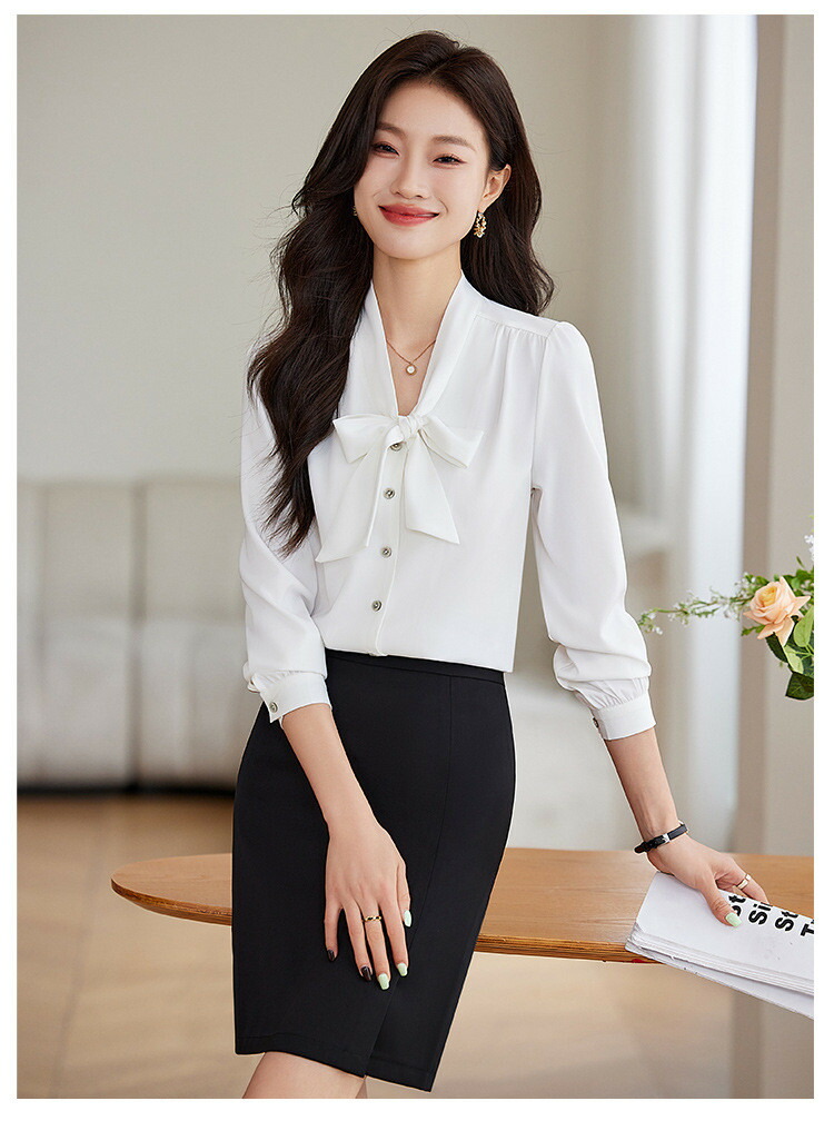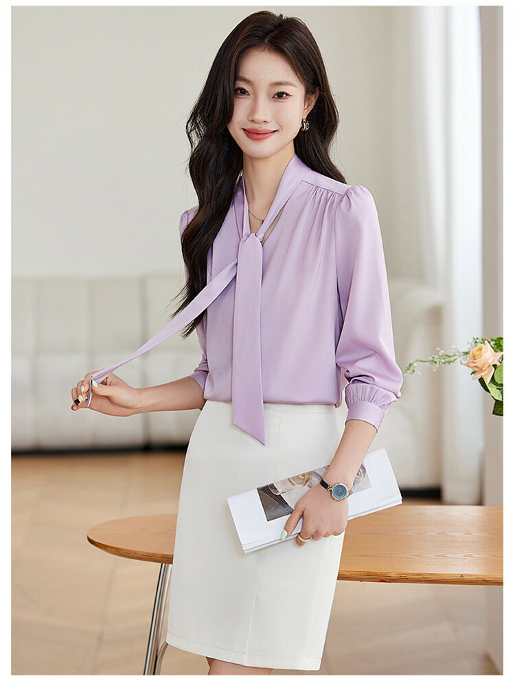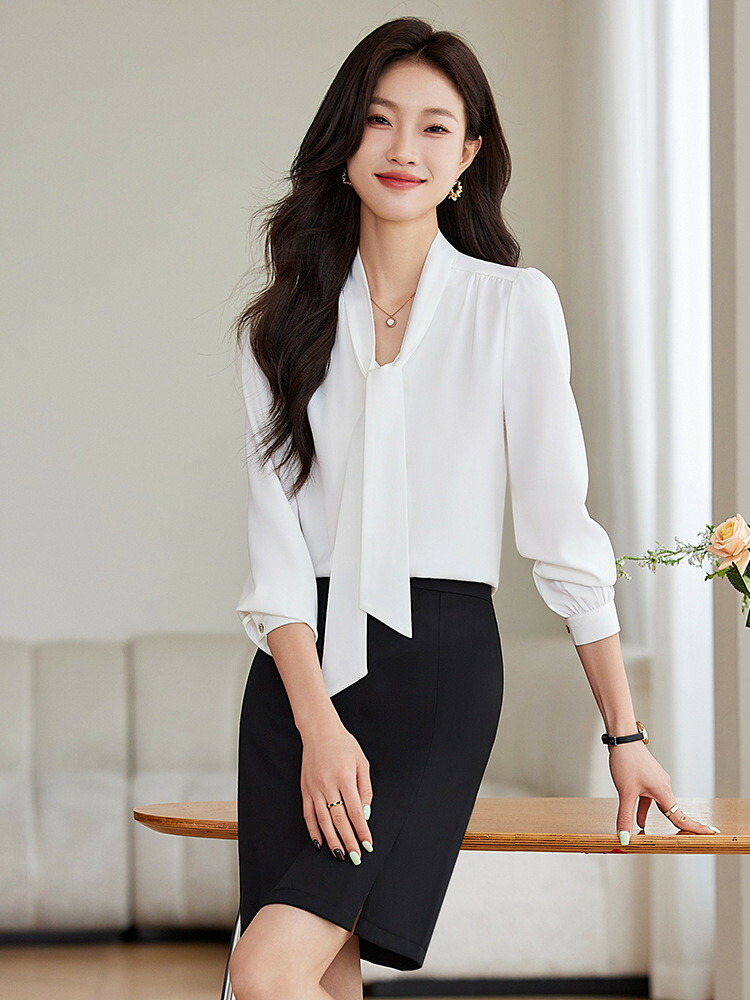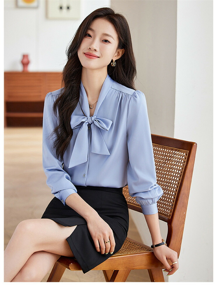 シアースリーブ ドッキングシャツ ボウタイシャツブラウス