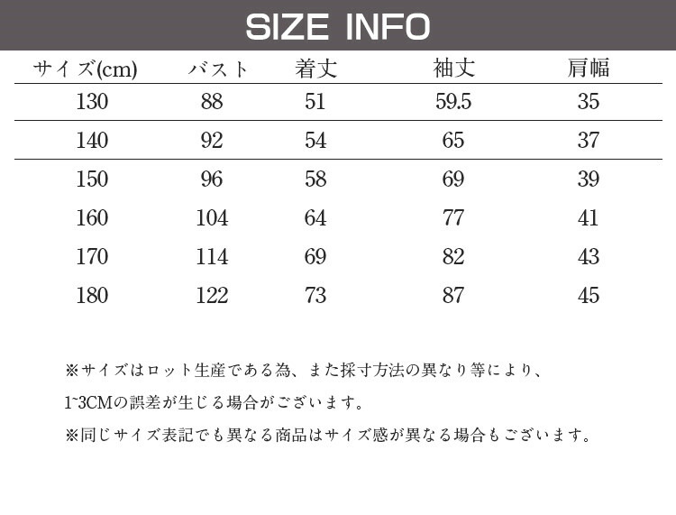 サイズ: 130cm 140cm 150cm 160cm 170cm 180cm