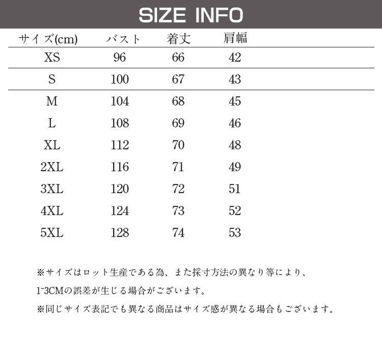サイズ: XS S M L XL 2XL 3XL 4XL 5XL