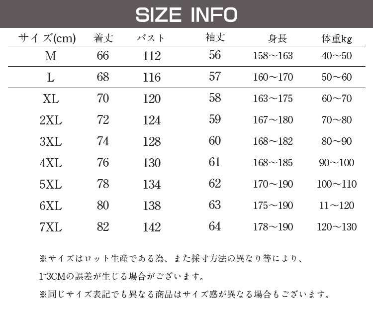 サイズ: M L XL 2XL 3XL 4XL 5XL 6XL 7XL