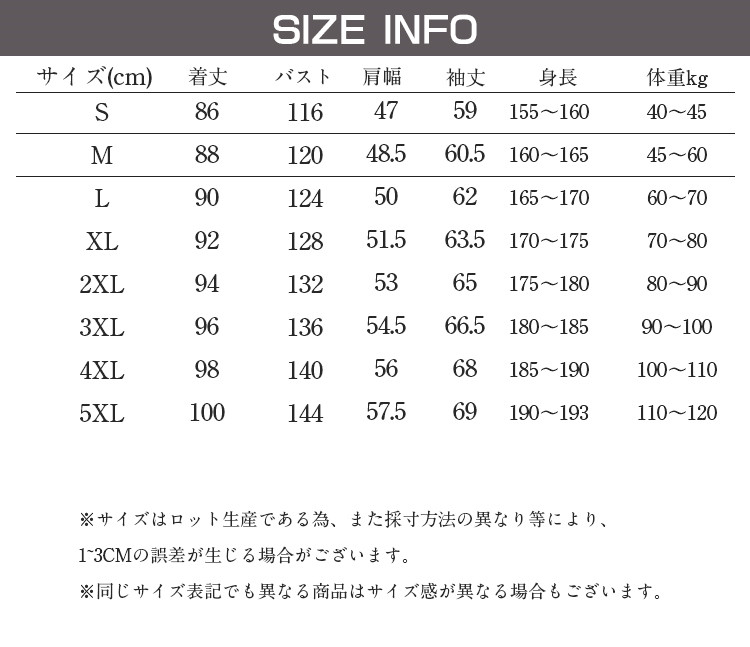 サイズ: S M L XL 2XL 3XL 4XL 5XL