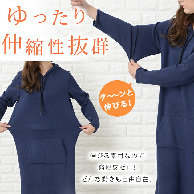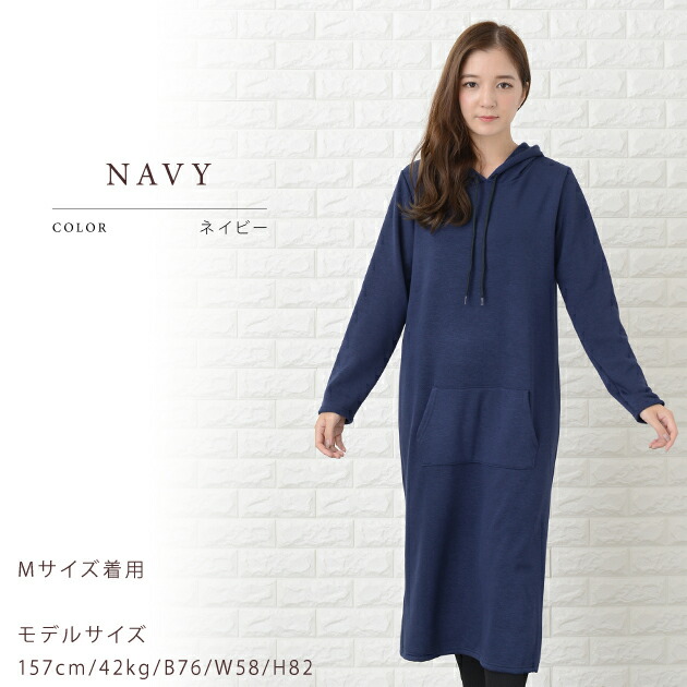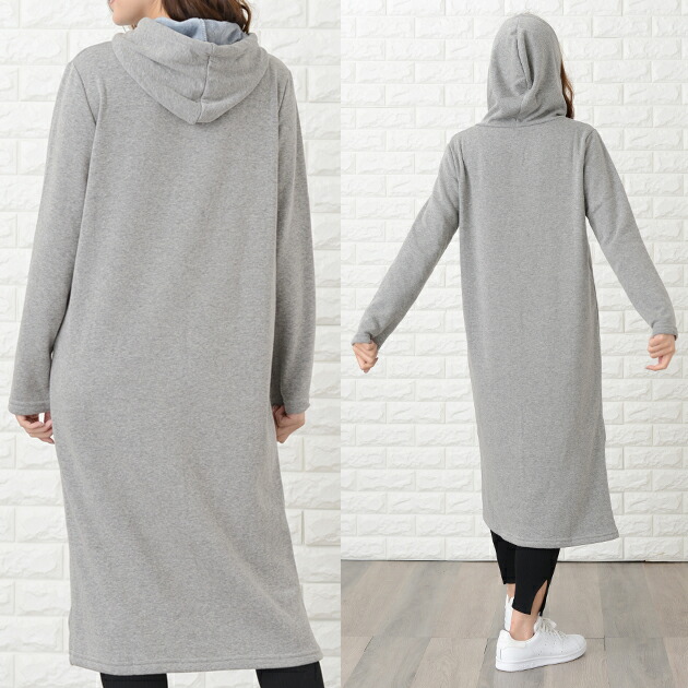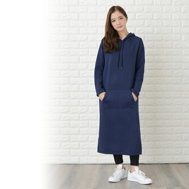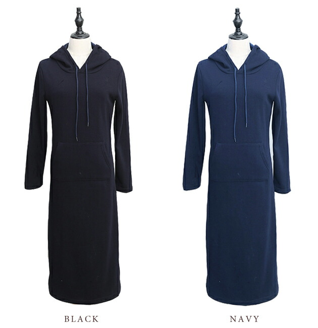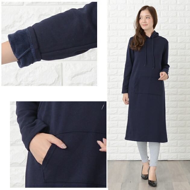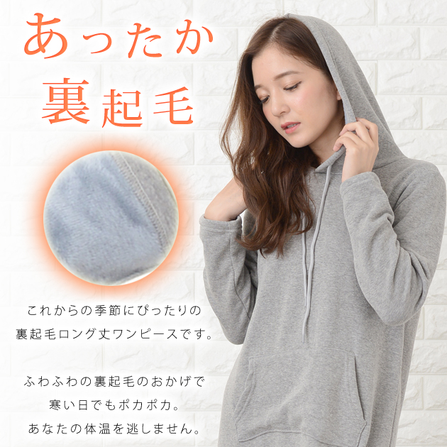 裏起毛 フード付き ワンピース ロング