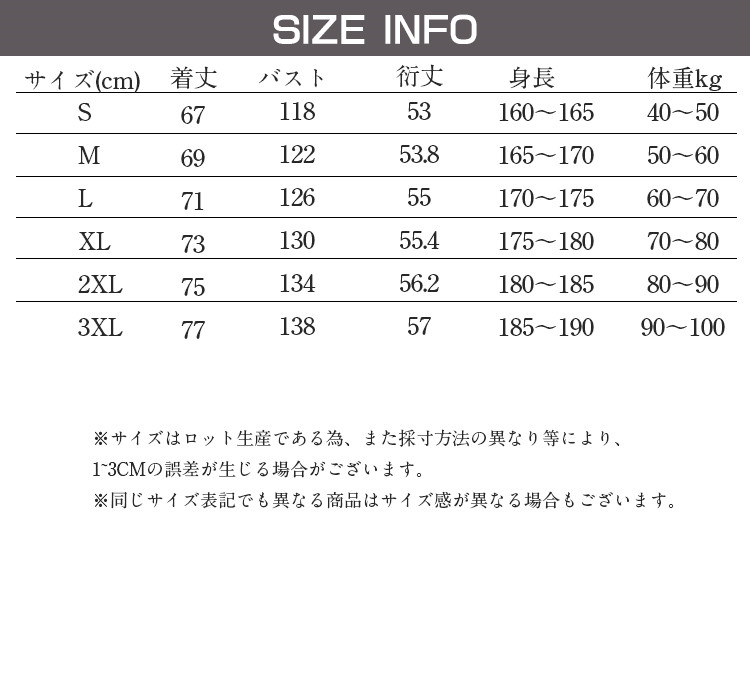 サイズ: S M L XL 2XL 3XL