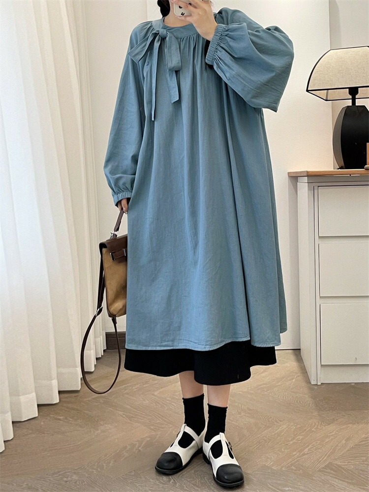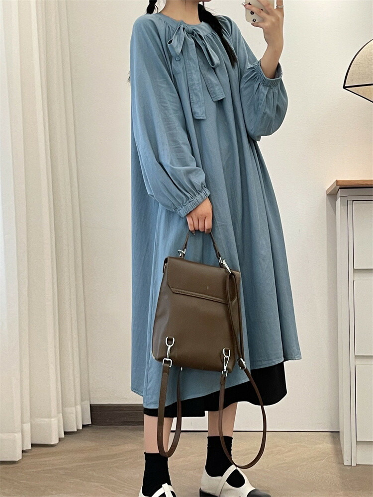 シアースリーブ ドッキングシャツ ボウタイシャツブラウス