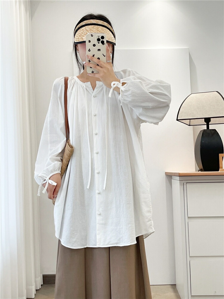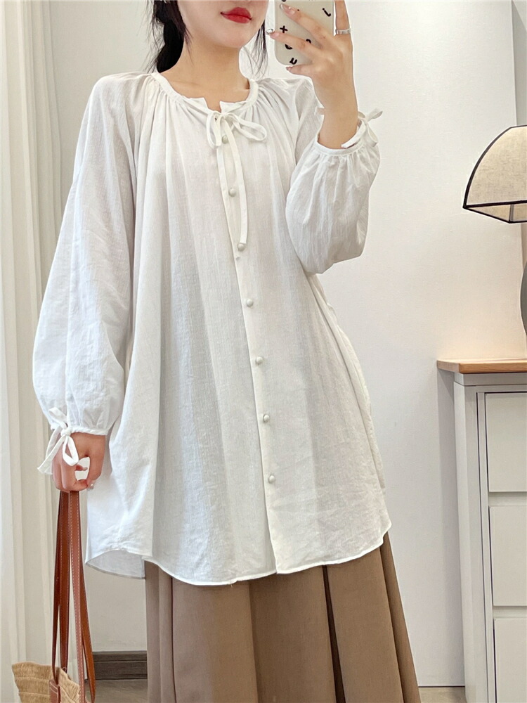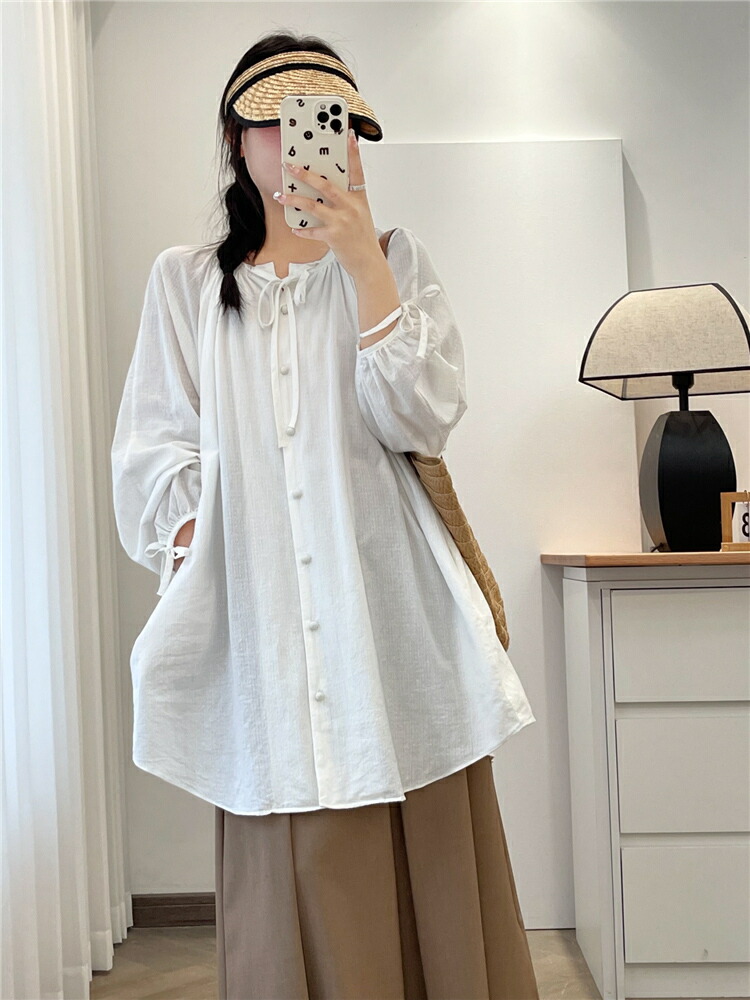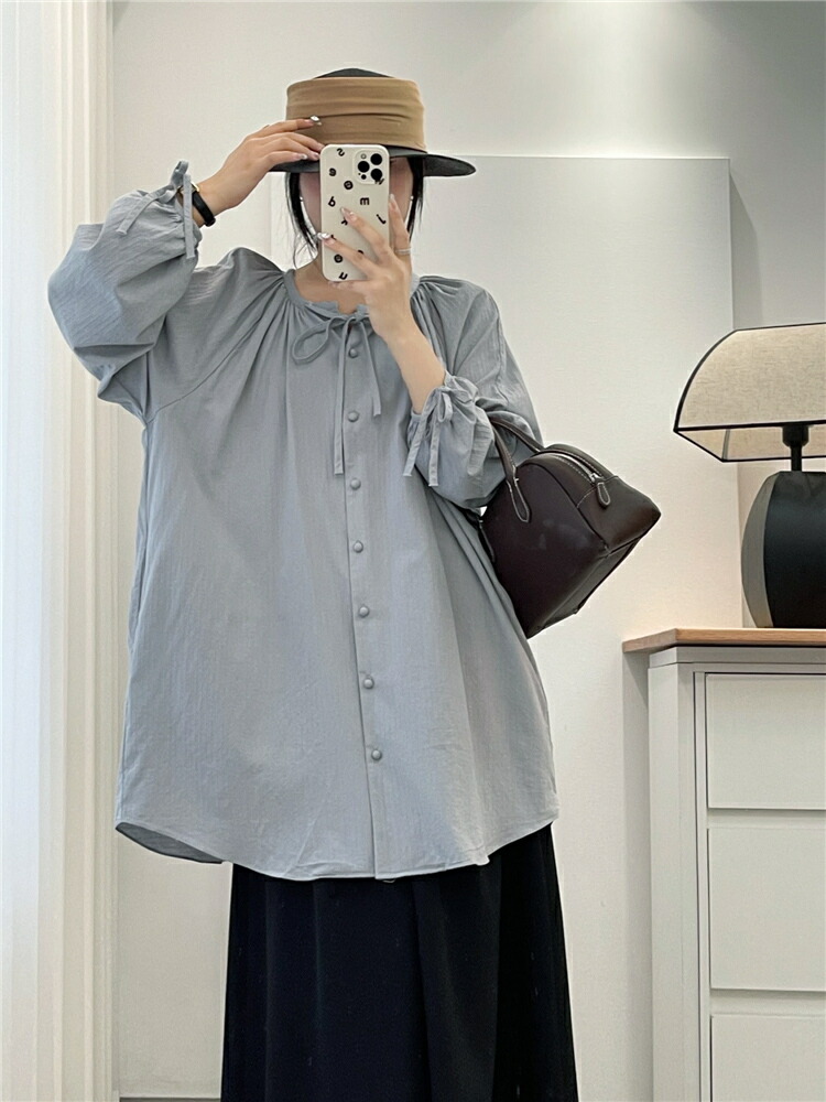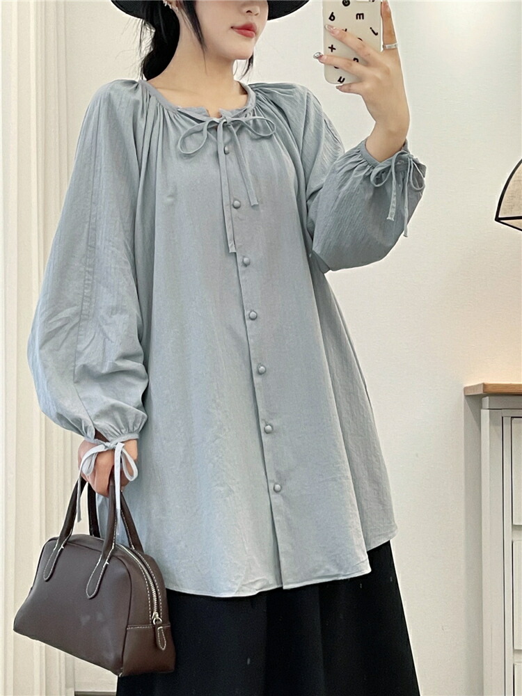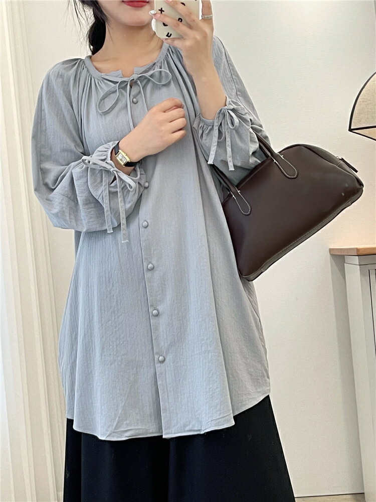 シアースリーブ ドッキングシャツ ボウタイシャツブラウス