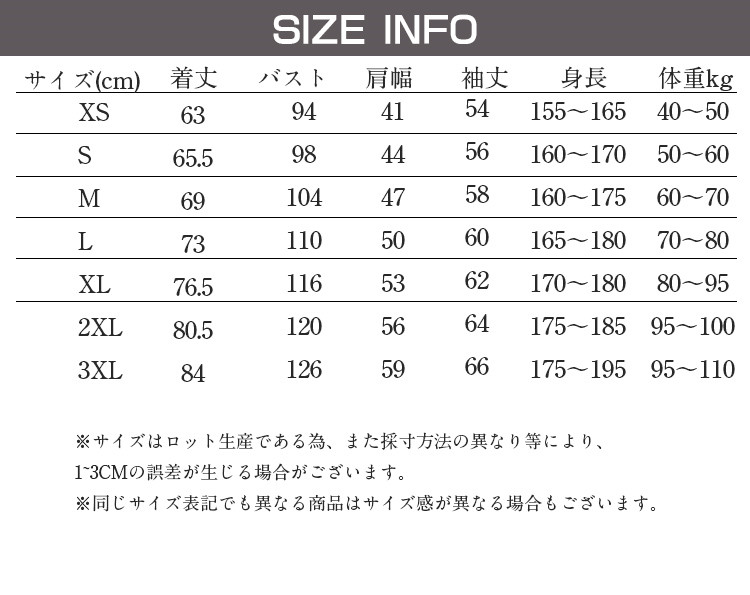 サイズ: XS S M L XL 2XL 3XL