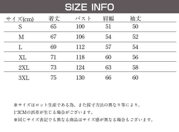 サイズ: S M L XL 2XL 3XL