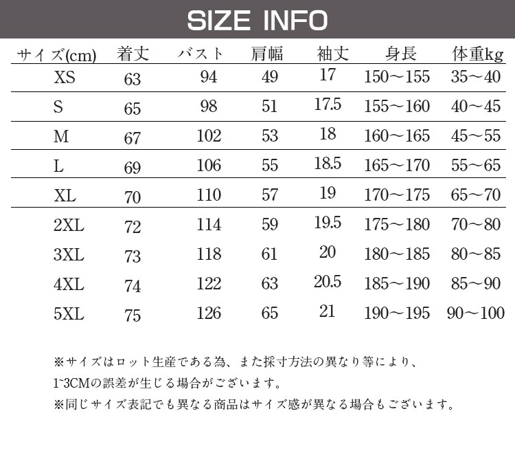 サイズ: XS S M L XL 2XL 3XL 4XL 5XL