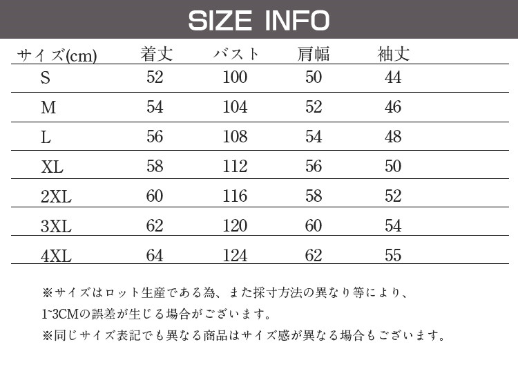 サイズ: S M L XL 2XL 3XL 4XL 5XL 6XL 7XL
