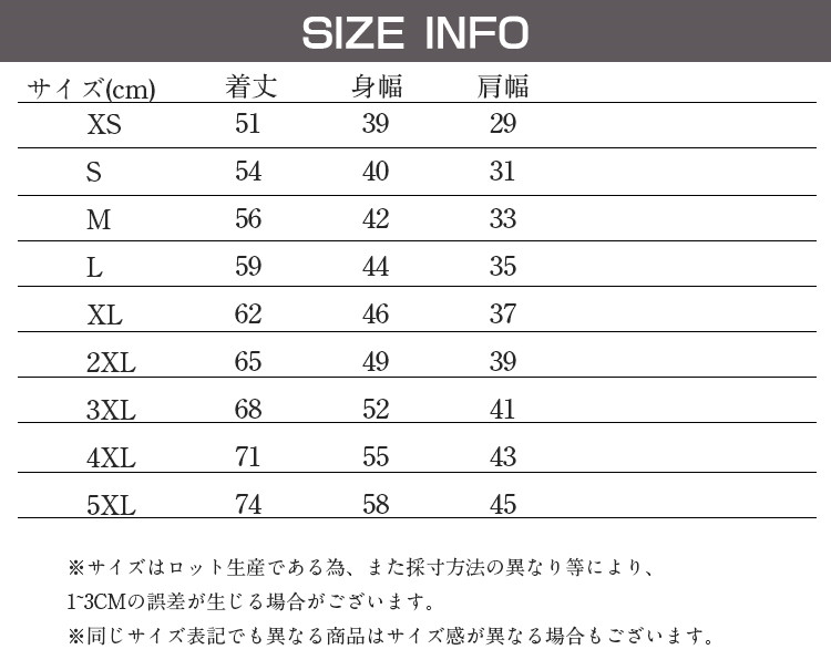 サイズ: XS S M L XL 2XL 3XL 4XL 5XL