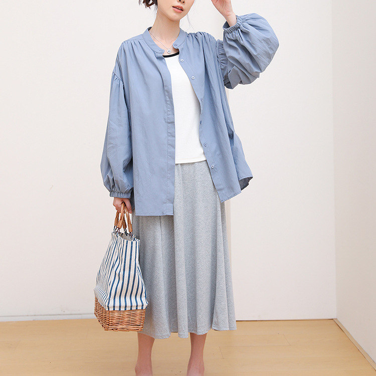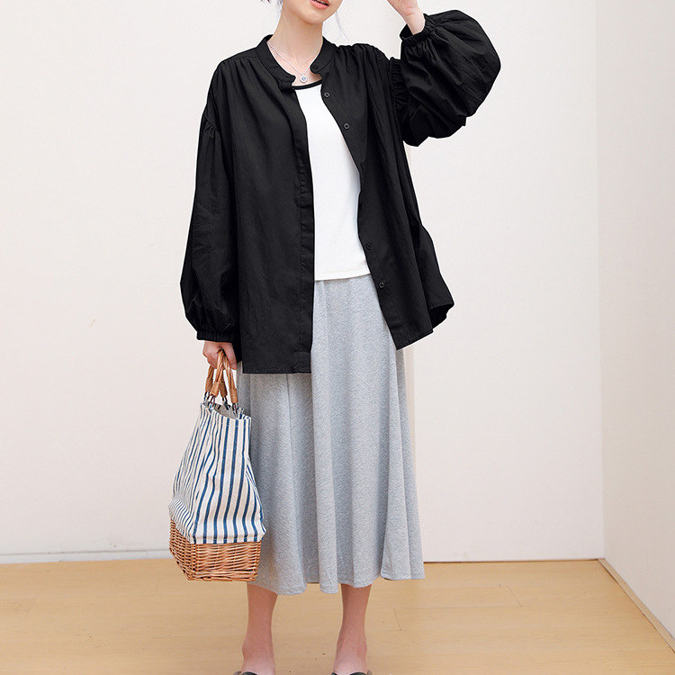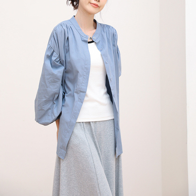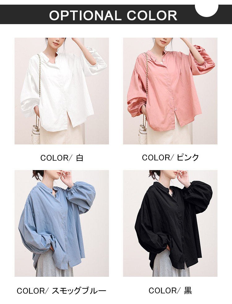 シャツ 長袖 夏 UV対応 パフスリー