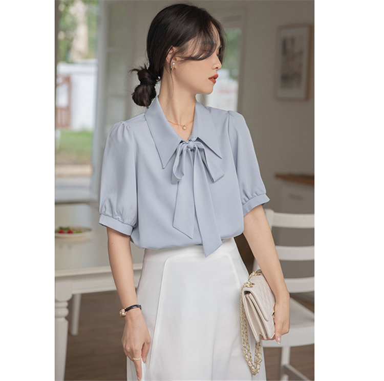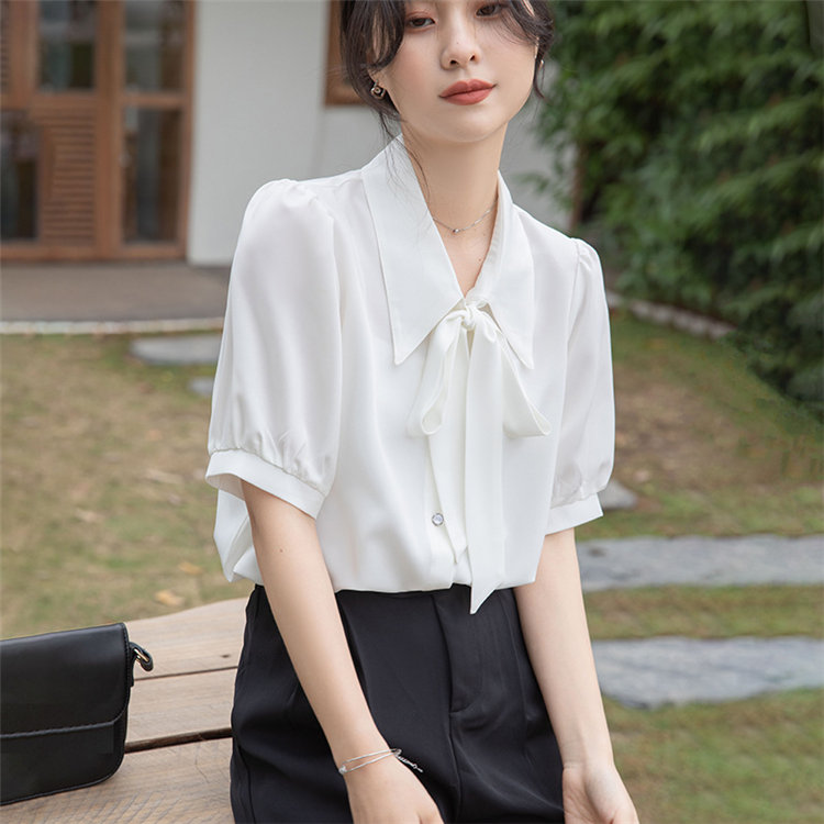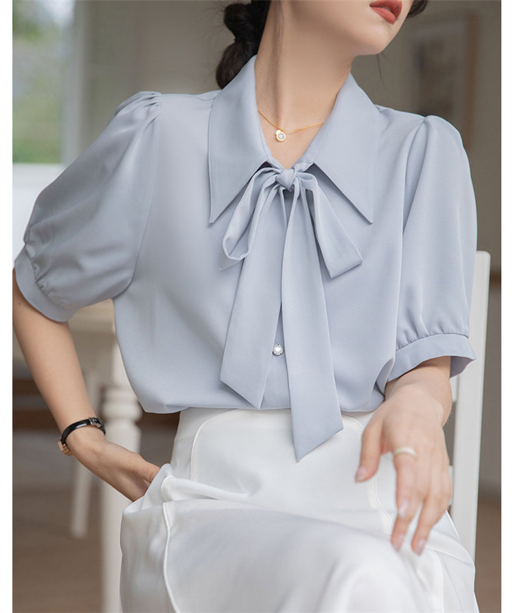 シアースリーブ ドッキングシャツ ボウタイシャツブラウス