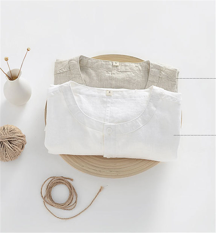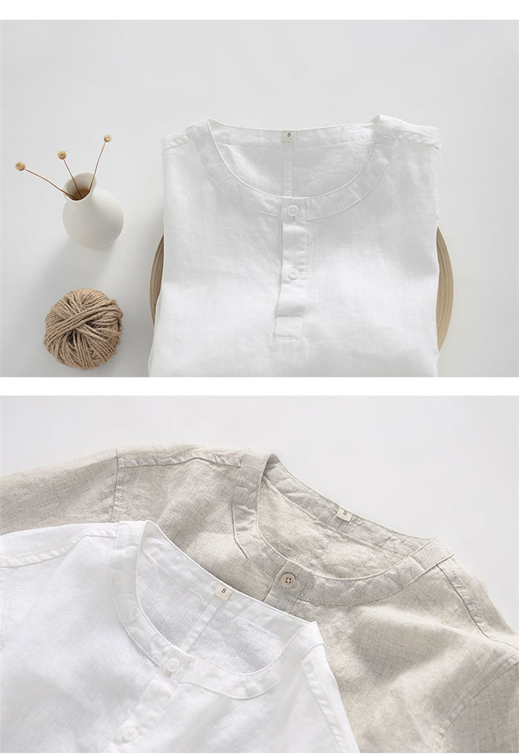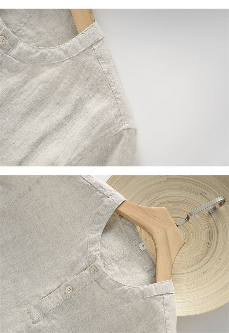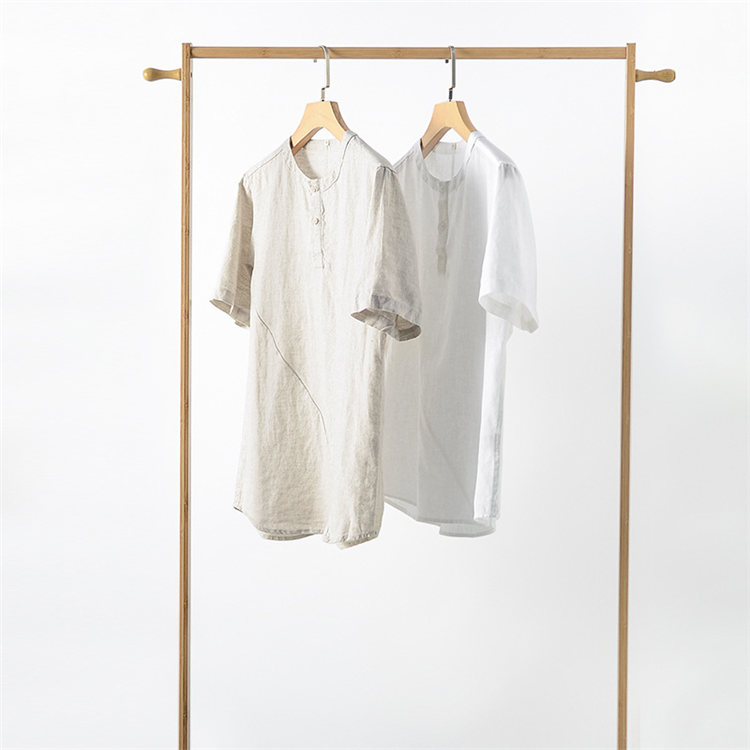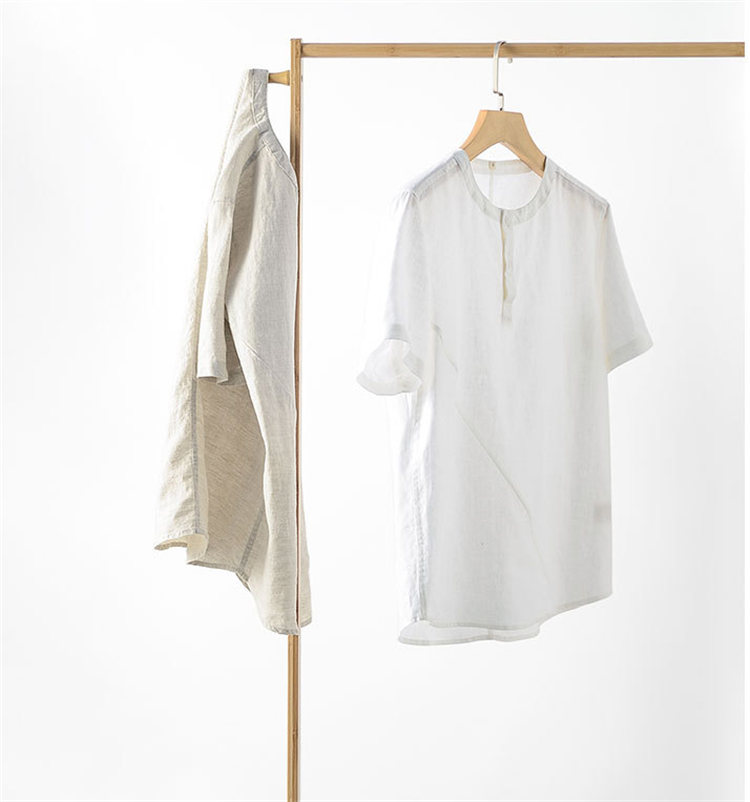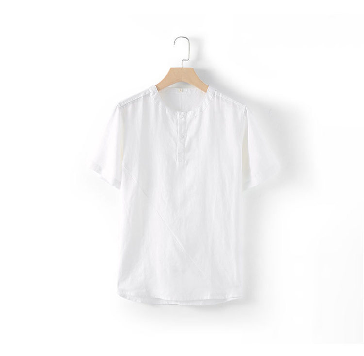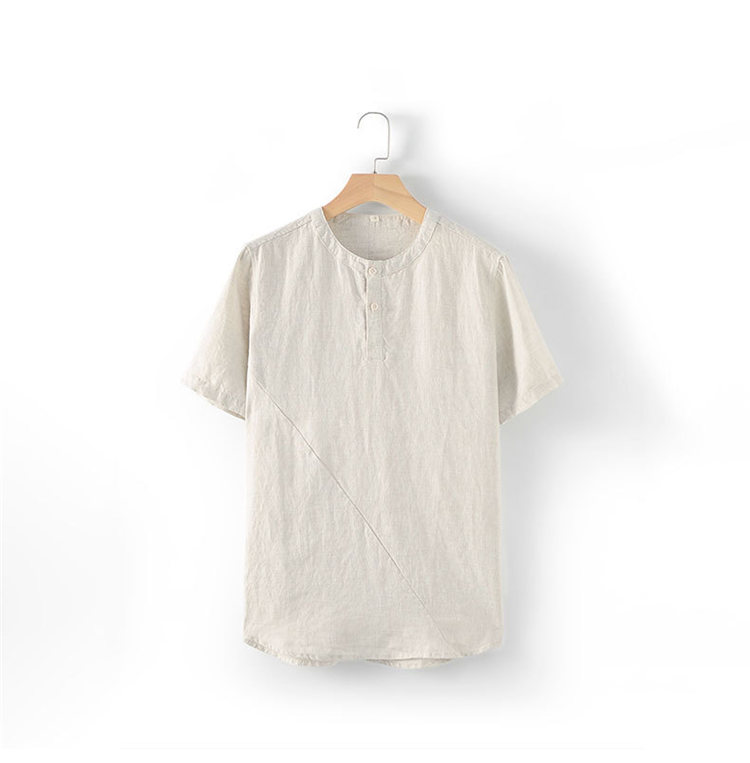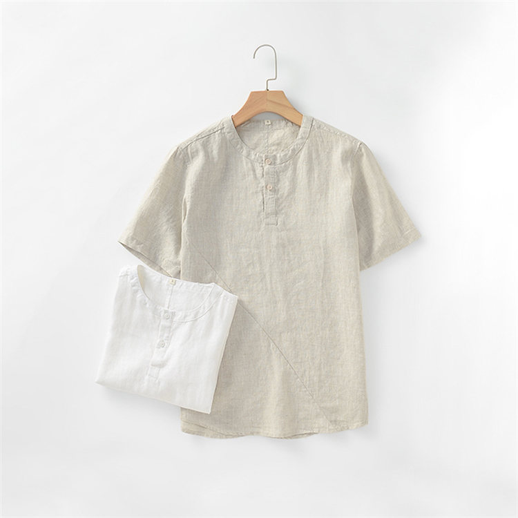 シャツ 半袖 メンズ トップス ノーカラー リネンブラウス カジュアルメンズファッション トップス カジュアルシャツ